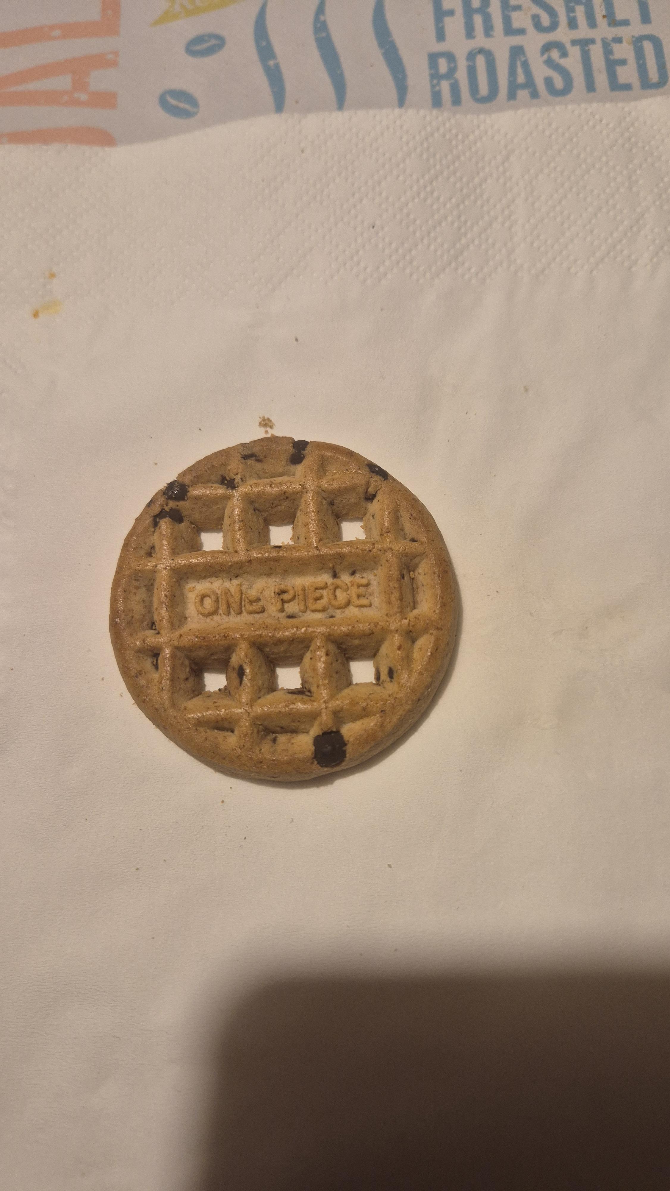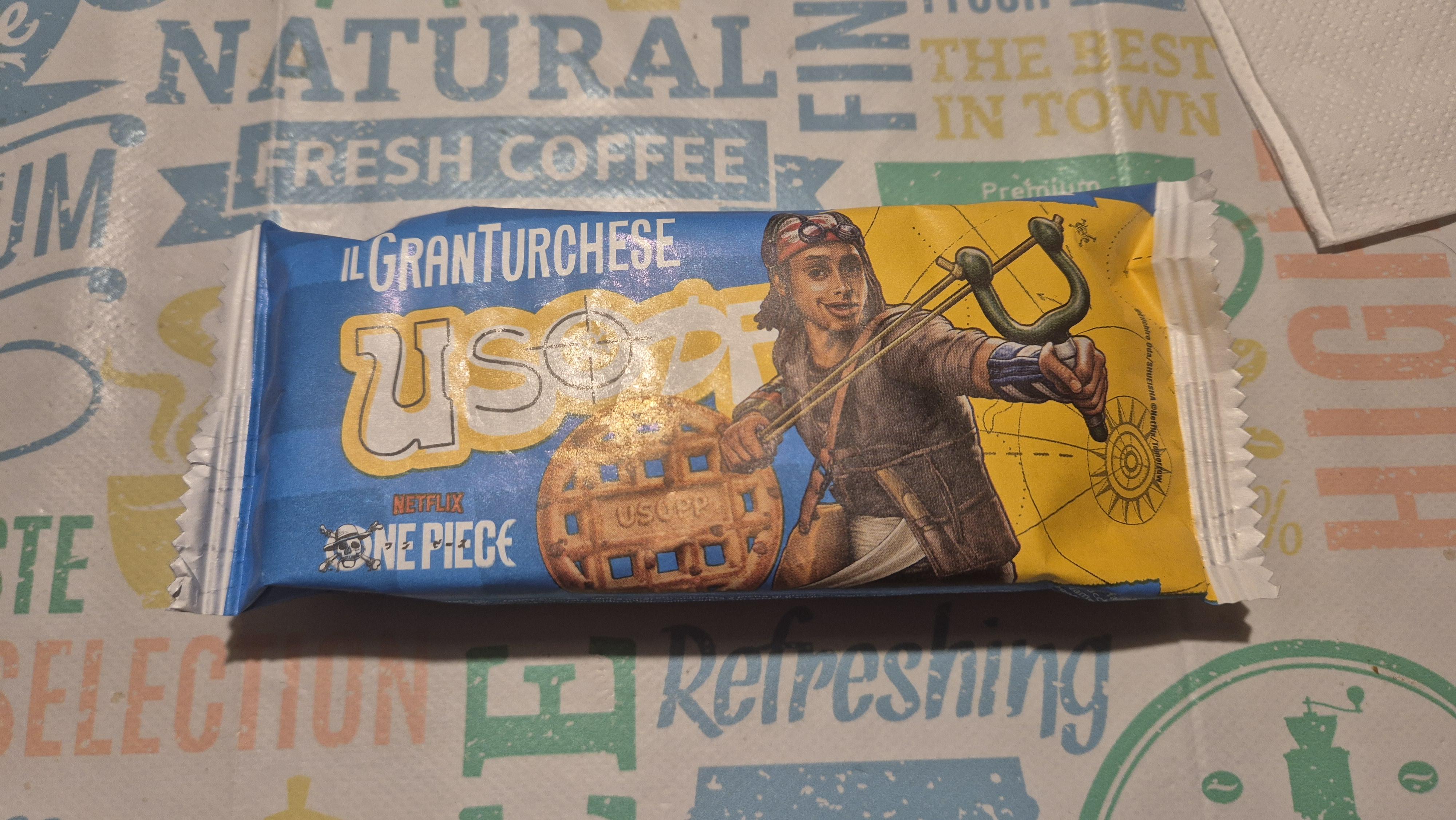 Primo pacchetto di biscotti OPLAosi aperto! Sopra c'è il buon Jacob/Usopp, e credevo che sui biscotti ci fosse scritto solo One Piece, e invece anche i nomi di personaggi e altre cose, non me lo aspettavo