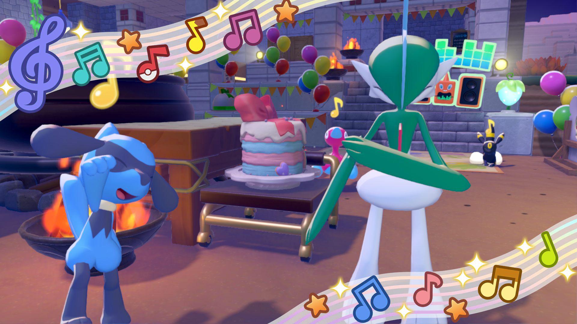 Alla festa si è presentato anche un Felino paldeano molto affamato che chiedeva di continuo una fetta di torta... un timido esemplare di Lucario dietro aspetta pazientemente il suo turno XD