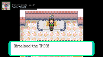 I lavori vanno un po' a rilento perché sono impegnato in tante cose e per poco dimenticavo di continuare coi Pokémon. Su Zaffiro il canovaccio è sempre lo stesso. Pure il team è quasi uguale, salvo solo lo starter e Surskit, e mi resi conto che a questo punto potevo finalmente creare team diversi per ciascuna versione... solo che ci ho pensato solo dopo aver battuto Petra con la stessa strategia. Inoltre questo set ha anche dei trofei dedicati alle Gare Pokémon, nonché un trofeo sul raccogliere ogni singola bacca (escluse quelle ultra rare)... e guarda caso ho scelto May. Drenare tutta l'energia di Geodude con Beautifly (e di conseguenza far sprecare alla Capopalestra le due pozioni), lasciare a Makit il tempo di prendere a schiaffi Nosepass fino allo cedimento, ottenendo il trofeo "Probing the Integration of Nature and Science" per aver battuto Petra. Sì, in Zaffiro i nomi dei trofei per i Capipalestra sono presi direttamente dalle descrizioni delle città. Completata la palestra e sconfitta la recluta Aqua, si pensa a catturare i restanti Pokémon. I soliti Nincada, Whismur e Skitty. Fun fact: per ridurre i costi di tempo e pazienza volevo mettermi a fare RNG Manipulation ma si è rivelato talmente complesso che ci ho rinunciato ^//^''' Mentre allenavo Surskit per fargli apprendere Profumino trovo il rarissimo Skitty e ovviamente lo catturo. D'ora in avanti andrò di "duro" lavoro e dedizione. -