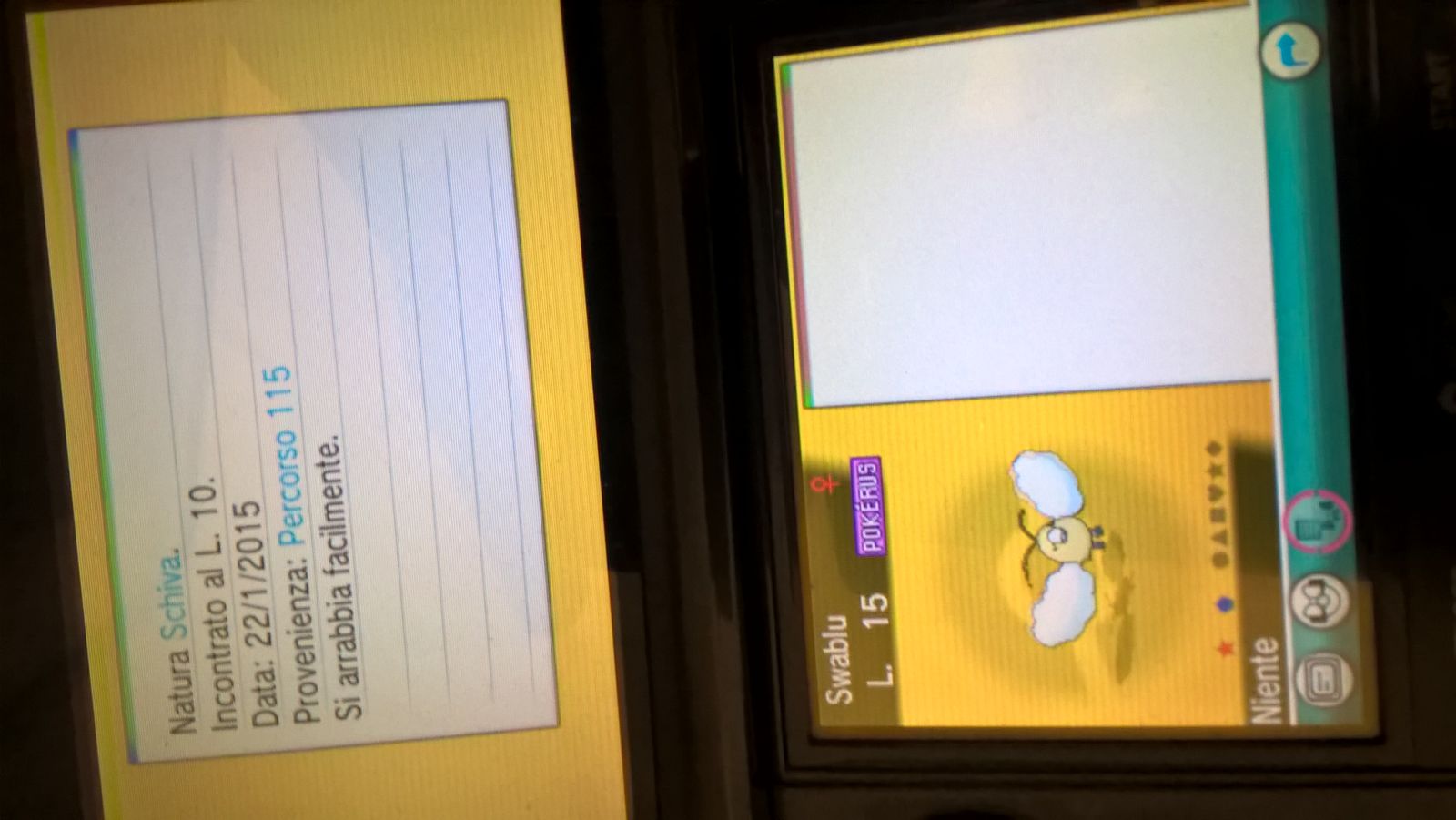 arcipelago Inviato 16 luglio, 2016 Inviato 16 luglio, 2016 Ciao , offro swablu shiny trovato nell'erba durante il gioco. Non clonato , non modificato , è così come l'ho catturato. Se mi spiegate come controllare l'id posso allegarlo , semplicemente non so come funzioni. SCADENZA : 17/07 ore 23:59 Prezzo partenza : 0,10 PP