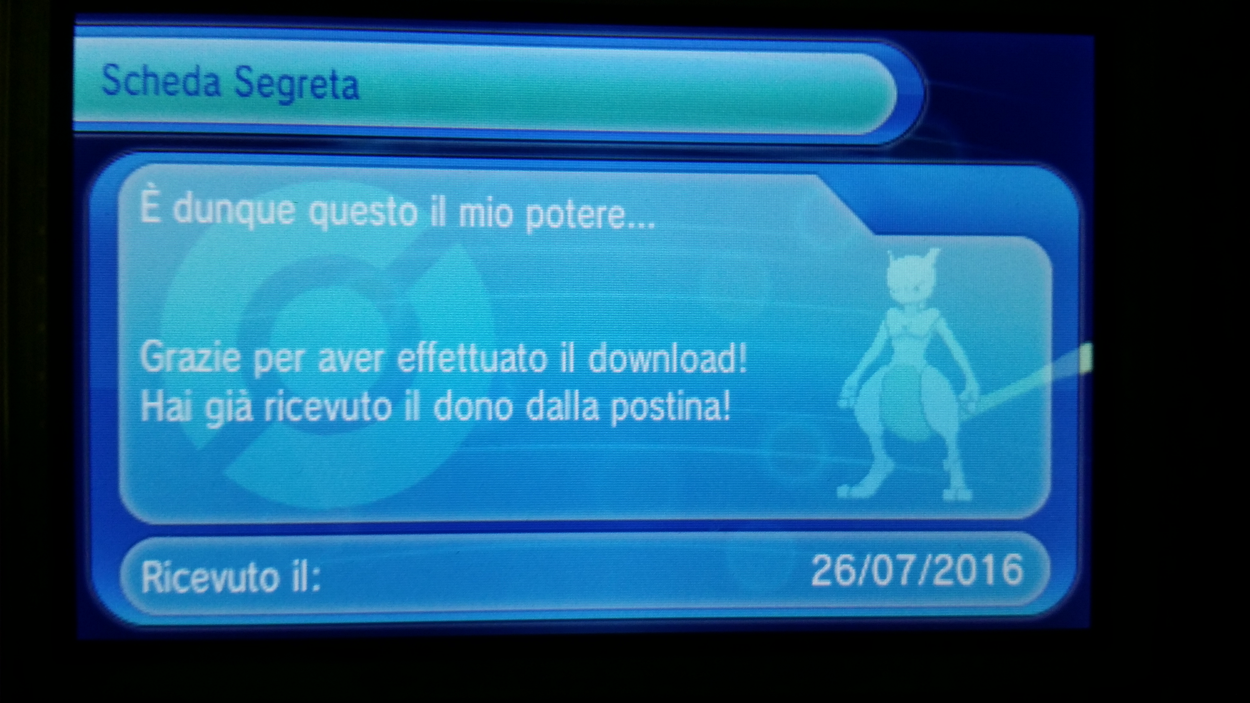 Anesius Inviato 1 agosto, 2016 Inviato 1 agosto, 2016 Mewtwo evento PGL Shiny (ottenibile con il Play!pokemon) (proof sotto spoiler) Il mewtwo all' asta è quello ORIGINALE, scaricato da me con il codice, prima dello scambio verrà clonato per far si che io mi tenga una copia del pokemon (clone o non a me interessa semplicemente il pokemon) Spoiler Base d'asta: 1 PP Rilancio minimo di: 0.20 PP l'asta si concluderà venerdi sera alle 21.00 Il miglior offerente verrà contattato subito da me