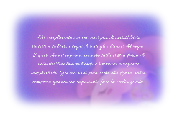 “Ecco fatto, amica mia! Ora non dovrai più preoccuparti! Al tuo risveglio non vedremo più quello che non vogliamo vedere! Nessuno assisterà alle atrocità che dilagano in questo regno!”