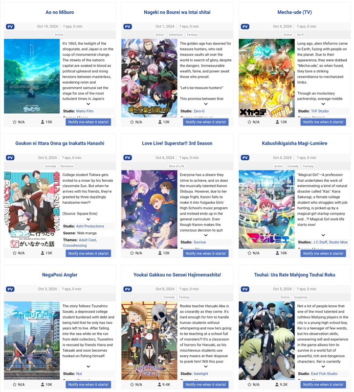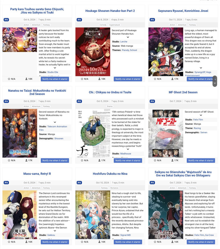 Stefano M Inviato 30 settembre, 2024 Inviato 30 settembre, 2024 16 ore fa, evilespeon ha scritto: eccomi con la lista di tutti gli anime della season Nascondi contenuto non sono brava come bloody a postarlo so ho fatto lo screen del primo sito trovato con la lista XD @BloodyRed @Stefano M quando vi va si parla di che vedrete Ma anche chiunque altro voglia parlarne Ah per quello che vedrò io per ora non so ancora a parte le new season di roba che già seguivo tipo blue lock o danmachi mi sa che poi proverò qualche primo ep di roba che trovo interessante,devo vedermela bene pure io la lista XD Hai fatto comunque un'ottimo lavoro, good job Allora ho dato già una sfogliata al listone per farmi un'idea andando pure io come sempre di primi ep , per ora son entrate nel mio radar tra le novità: (per alcuni ho inserito direttamente il titolo tradotto) Acro Trip e Magilumiere Co. Ltd (entrambi tralaltro a tema Mahou-shoujo che risulta discretamente presente come genere in season, cosa che probabilmente Bloody apprezzerà) Dan Da Dan Uzumaki (horror dall'alto potenziale anche se son solo 4 episodi) Ranma 1/2 Kekko Surutte Honto desu ka? 365 Day to the Wedding You are Ms. Servant Trillion Game Kinoko Inu A Terrified Teacher at Goul School Tsuma, Shougakusei ni Naru (o Tsumashu) Il movimento della terra Blue Box Yakuza Fiancè: Raise wa Tanin go II (forse) Murder Mystery of the dead (forse) Altro(?) E' stata aggiunta una reazione da BloodyRed 1