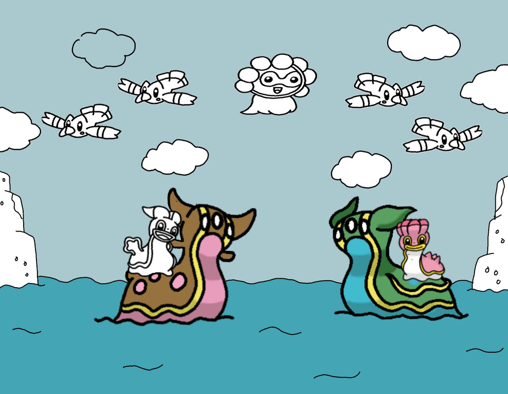 Stra carinissimo questo disegno, un bel tocco mettere gli shellos sopra i gastrodon. Un altro fantastico lavoro che da colorato sarà ancora più bello