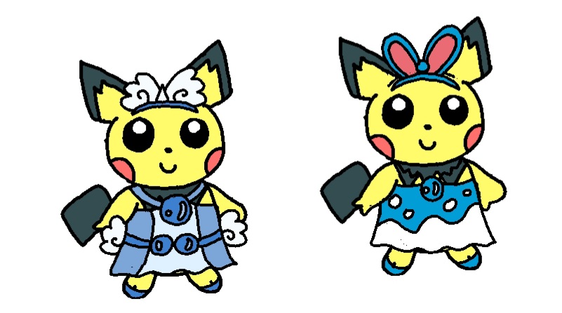 l'idea era usare pichu come midella e farle indossare dei vestiti ispirati ai pokemon vari