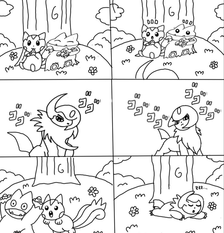 Scenettina comica di absol che intimidisce alcuni pokemon usando l'abilità pressione perche occupavano il suo posto preferito per dormire fatta per il tema pressione