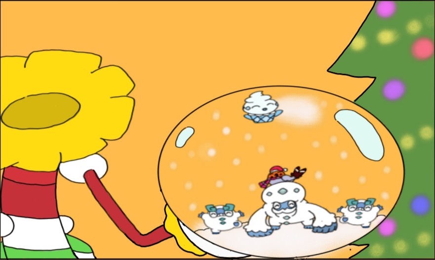 Che idea carina. :cuore: Anche Blacephalon dal suo Ultramondo si è fatto prendere dall'atmosfera natalizia. :smile2: Mi piace molto anche l'interno della sfera: dal Flecthling - con sciarpa e berretto che gli danno un'aria ancora più tenera - sulla testa di Darmanitan al Vanillite che fa nevicare, tutti i particolari sono dolcissimi e curatissimi.