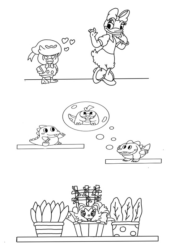 allora gente bellissima la conn da mega problemi so oggi nessun votaggio vi posto i disegni veloci che ho fatto sugli starter di 9 gen ma non soiego perche scrivo veloce cosi sono sicura mi parte il mess,per spiegazione vedere in agg