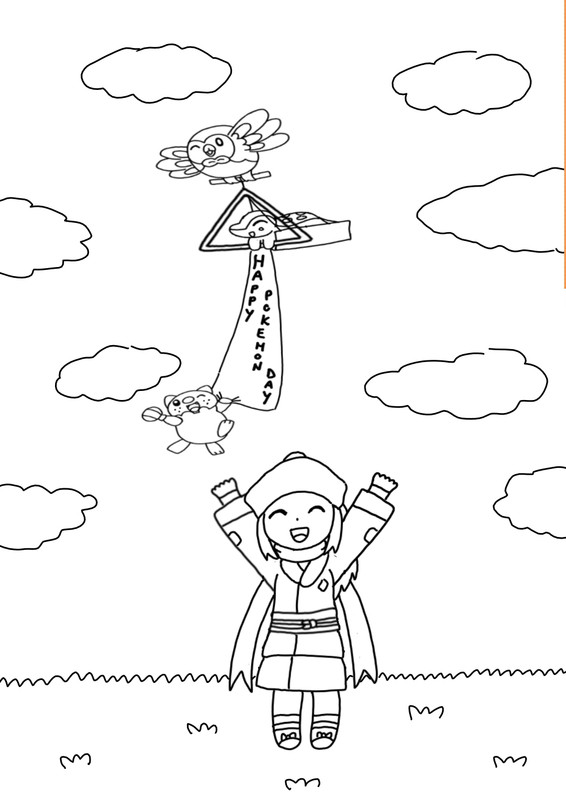 Molto allegro il disegno per il Pokémon Day. :smile1: Che carino Rowlet che fa la parte di Braviary.