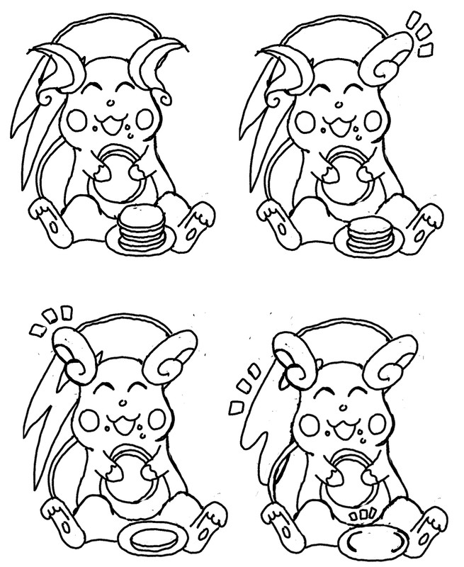 Scenettina con raichu che mangiando frittelle si ammorbidisce le forme e diventa raichu alola bastaa su una info che avevo letto di raichu alola su una leggenda che diceva fosse un raichu che appunto aveva ammorbidito le forme mangiando troppe frittelle dolci per l'inktoper su topidi,roditori,conigliosi e simili