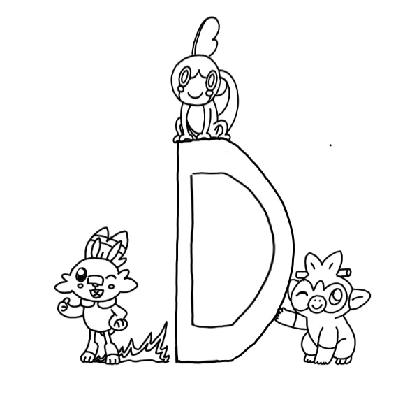 Lettera D con sobble,grookey e scorbunny