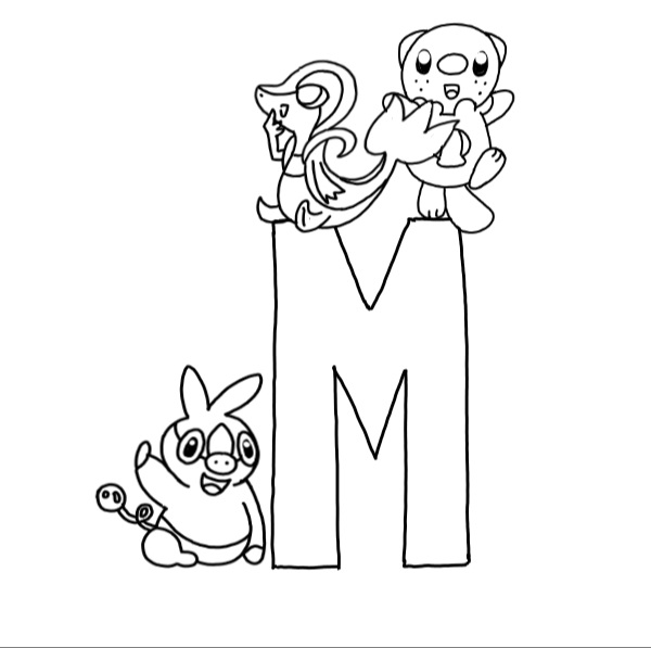Lettera M con snivy,osha e tepig