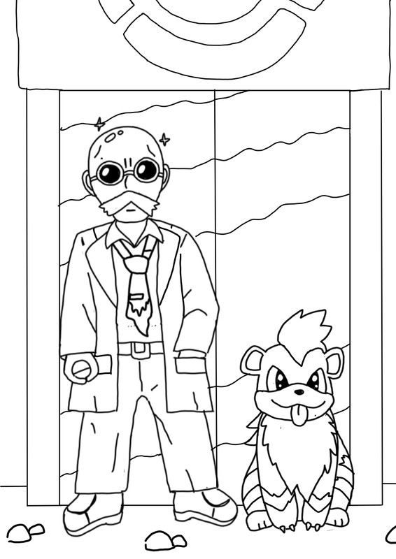 Blaine e growlithe davanti alla palestra per il tema isola cannella...la pelata risplendente è un tocco di classe se mi permettete XD
