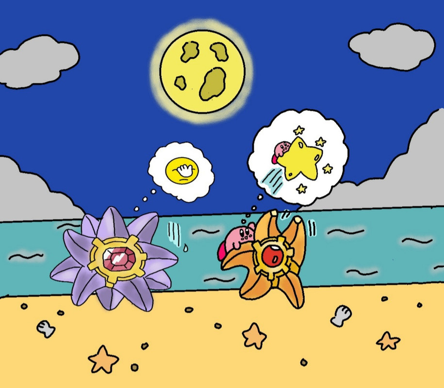Crossover kirby e poke con gli stellidi e il nostro kirby