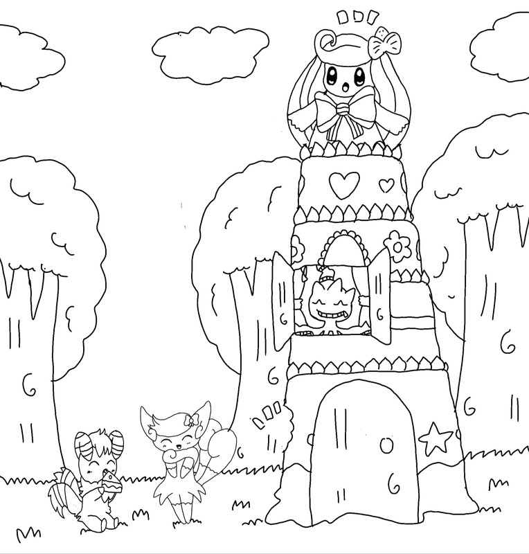 Nel disegno vedete la nostra giga alcremie che fa la casa di dolci mentre la nostra mega banette fa la strega che sorride gentile ai ragazzi...gentile per ora XD