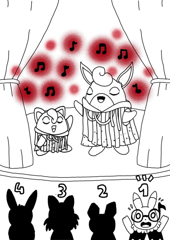 Jiggly e wiggly in concerto...stanno usando ultimocanto per quello i numeri sugli spettatori...e un pika devo sempre apprezzarlo io XD il vestito di wiggly è una skin di poke unite ,entre quello di jiggly lo ho fatto io uguale a quello di wiggly