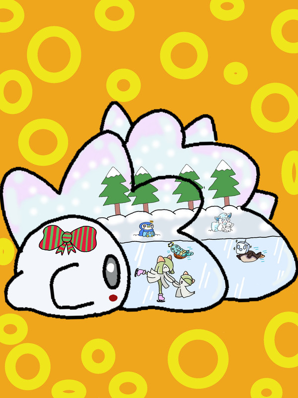 Come dicevo in agg l'idea era di fare uno snom tipo sfera che se la scuoti scende la neve con dentro una scena invernale di pokemon che giocano sul ghiaccio ..ma è venuto un boh con uno sfondo a più  boh XD