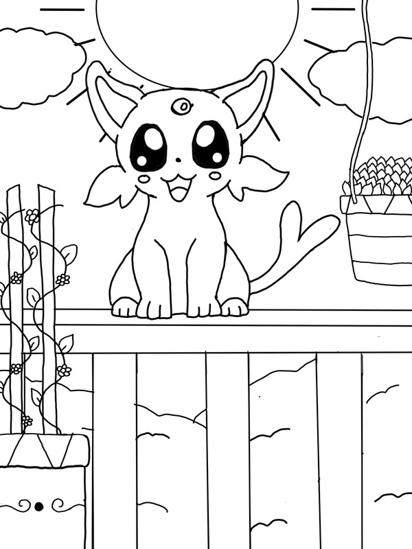 Ma questo Espeon pucciosissimo che mi guarda con gli occhioni dolci?? T_T Ci provo, forse il tema è "Sole" perché Eevee si evolve in Espeon di giorno?
