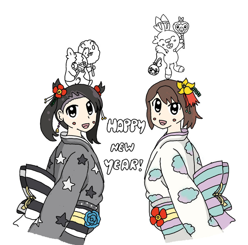 Per i kimono mi sono ispirata a dei pokemon ...per gloria ponyta galar e il fiore sul kimono bellossom