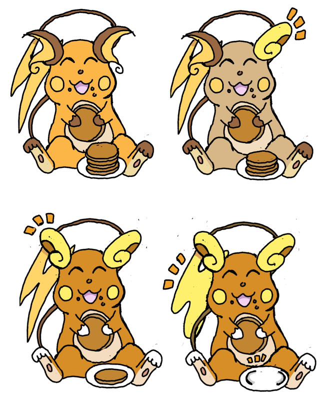 Nel secondo disegno vedete un color di pelliccia strano ma perche doveva rappresentare il colore di raichu normal che si scoloriva preparandosi a cambiare e diventare color raichu alola