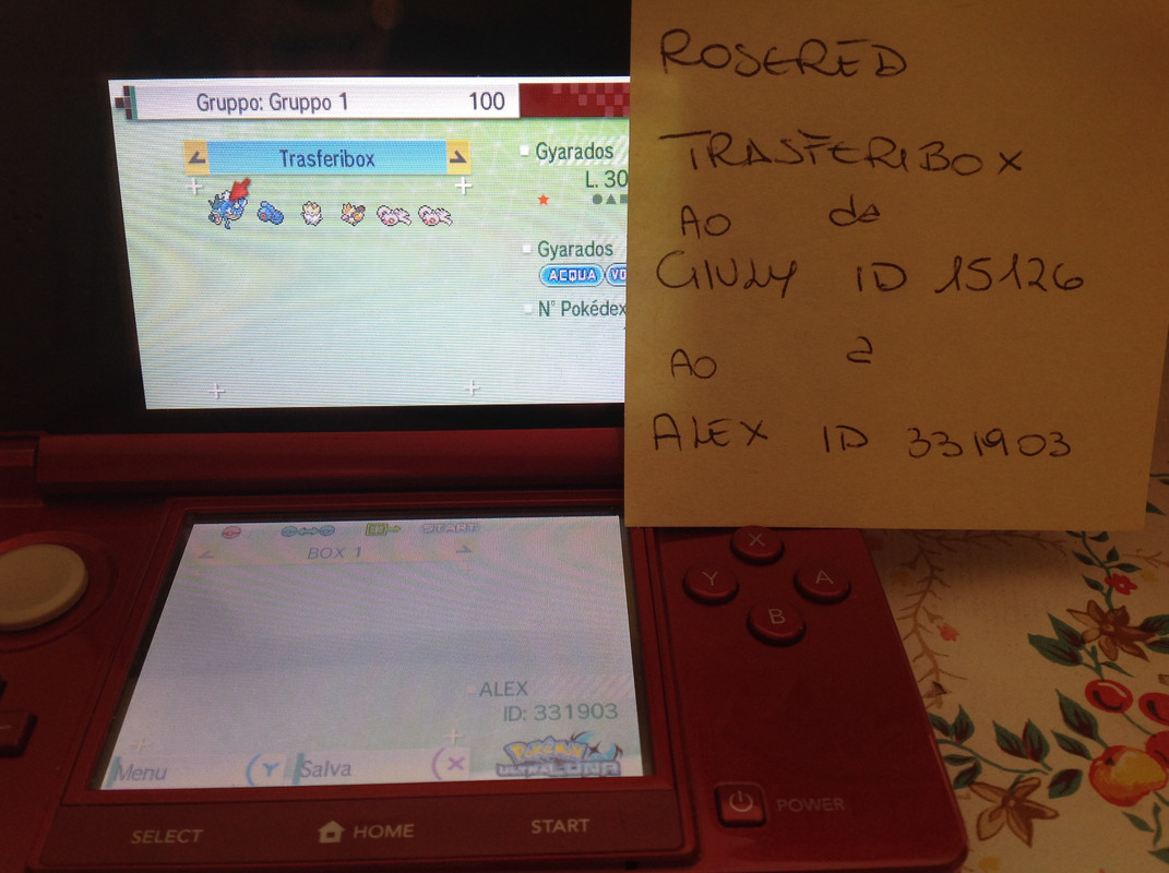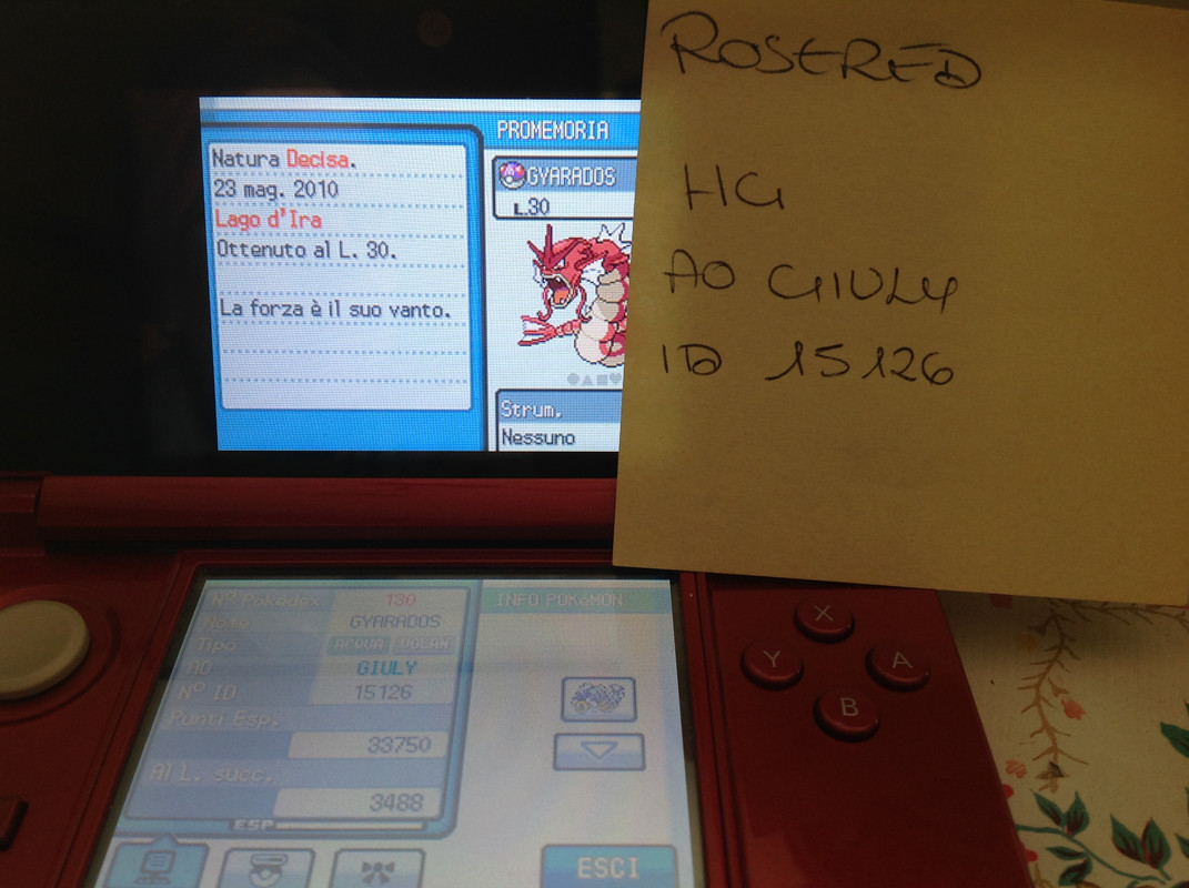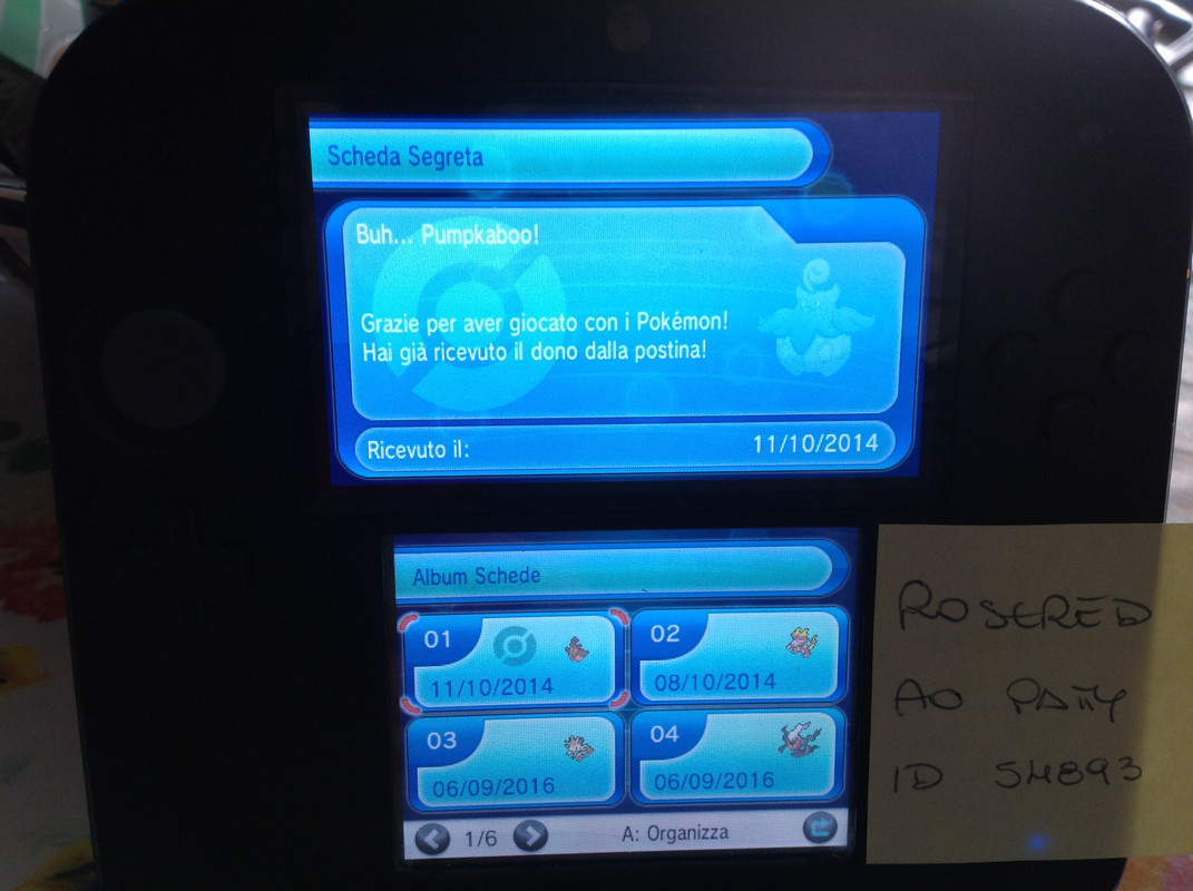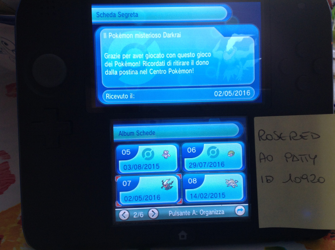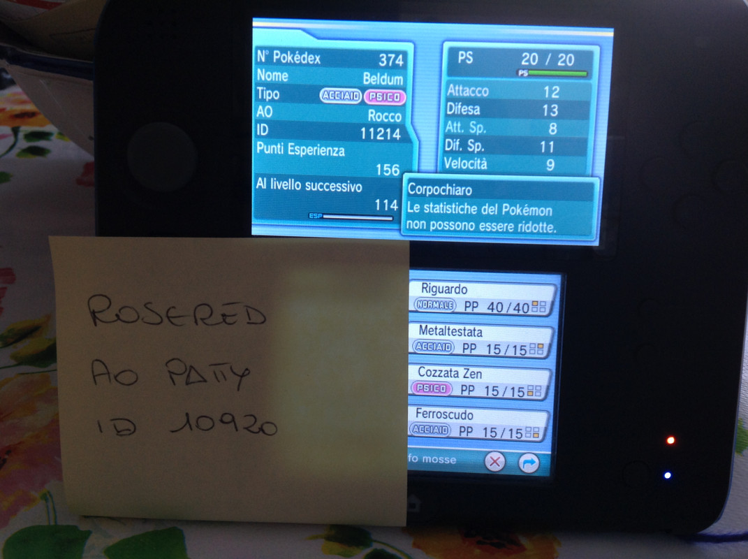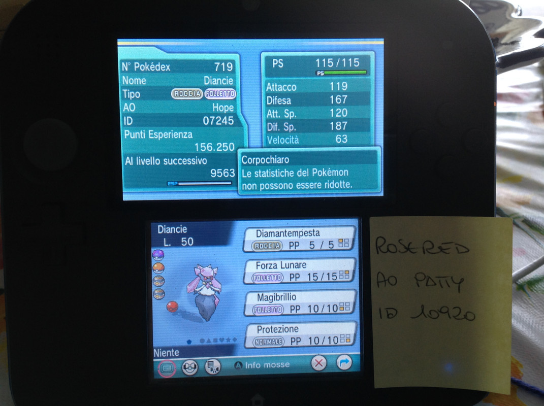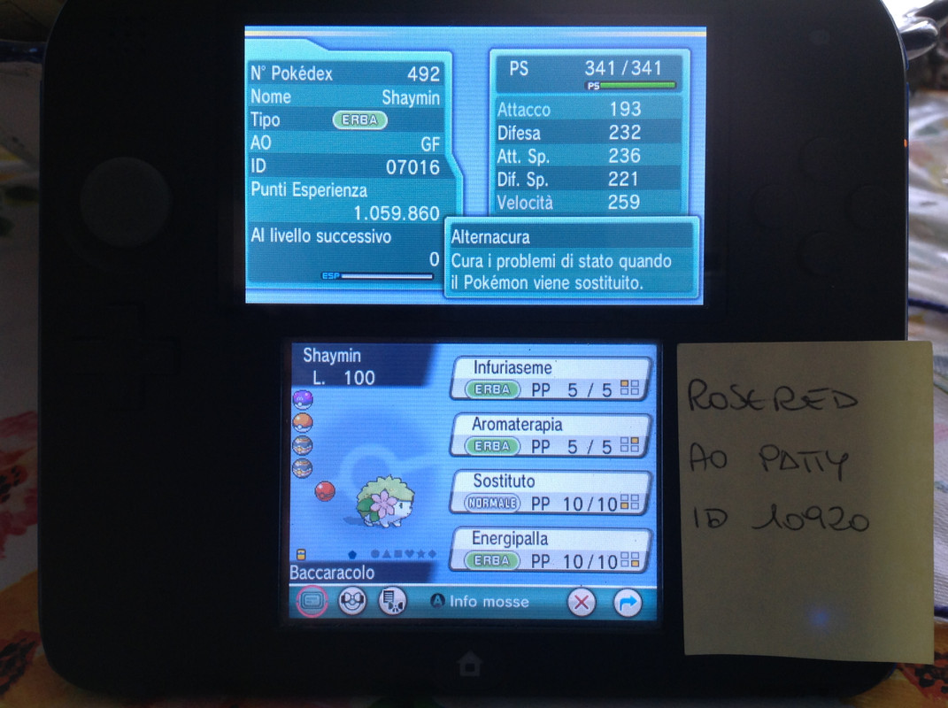RoseRed Inviato 22 gennaio, 2020 Inviato 22 gennaio, 2020 (modificato) I pokemon evento qui presenti, riscattati da me, non potranno essere rivenduti in nessun mercatino, asta o privatamente! Sono frutto di innumerevoli softreset per offrire non solo eventi in quanto tali, ma eventi con nature e statistiche il quanto più ottimali ( cosa molto difficile per i pokemon vintage per i quali non c'era la regola di minimo 3 statistiche al 31)! Tutti gli eventi sono stati clonati con il backup del salvataggio e potranno essere scambiati su USUM e/o SwoShi e/o Perla e Diamante! Elencate qui ciò che vi interessa e poi mandatemi un messaggio... Non scambio su HOME Tutti gli starter dei precedenti giochi sono stati da me breedati in aprimons, dandogli egg moves. L'AO sarà RoseRed 333858. Avranno tutti 5 ivs come da loro natura. Sesso e Abilità saranno random e il teratipo corrisponderà al loro tipo. Costo 0.15 pp cadauno, per più richieste si effettueranno sconti. Costo scarti 0.07 pp. Spoiler -Bulbasaur dream ball /modest (Capocciata-Tossina-Maledizione-Radicamento) -Charmander level ball/timid (Forzantica-Dragofuria-Codacciaio-Panciamburo) -Squirtle lure ball/careful (Specchiovelo-Nebbia-Bruciapelo-Acquagetto) -Chikorita friend ball/calm (Forzantica-Frustata-Curapulsar-Contrattacco) -Cyndaquil level ball/timid (Extrasenso-Doppiocalcio-Supplica-Maledizione) -Totodile lure ball/jolly (Forzantica-Contrattacco-Acquagetto-Blocco) -Treecko friend ball/timid (Nottesferza-Lacerazione-Dragospiro-Doppiocalcio) -Torchic level ball/adamant (Nottesferza-Beccata-Contrattacco-Tritartigli) -Mudkip lure ball/jolly (Fango-Morso-Pestone-Specchiovelo) -Turtwig friend ball/jolly (Colpo-Affannoseme-Troppoforte-Bodyguard -Chimchar dream ball/timid (Contrattacco-Bruciapelo) -Piplup moon ball/calm (Sbadiglio-Trespolo-Tracotanza-Acquanello) -Snivy friend ball/timid (Codacciaio-Sintesi-Tornado-Specchiovelo) -Tepig level ball/jolly (Colpo-Sbadiglio-Sbigoattacco-Troppoforte) -Oshawott lure ball/modest (Eterelama-Idrotaglio-Nottesferza-Spadasolenne) -Chespin friend ball/bold (Superzanna-Maledizione-Panciamburo-Sintesi) -Fennekin rapid ball/timid (Copione-Desiderio-Ipnosi-Magicozona) -Rowlet safari ball/jolly (Scacciabruma-Trespolo-Privazione-Stordiraggio) -Litten level ball/adamant (Bruciapelo-Monito-Tracotanza) -Popplio moon ball/modest (Acquanello-Goccia Vitale-Ultimocanto) -Grookey friend ball/jolly (Bruciapelo-Martelpugno-Parassiseme-Forza) -Scorbunny rapid ball/jolly (Calcinvolo-Sbigoattacco-Superzanna-Turbosabbia) -Sobble moon ball/timid (Acquagetto-Pungiglione-Geloscheggia-Doppioteam) Jirachi Cromatico Tanabata costo 3.00 pp -Jirachi Tanabata Cromatico Liv. 10/AO たなばた/ID 08014/Leggiadro/Timido/x-31-x-31-31-x/Pregio ball/Desiderio/Comete/Curardore/Forza Lunare/Provenienza Kalos/data ottenimento agosto 2014/Dynamax 0 Rayquaza Cromatico Evento costo 3.00 pp -Rayquaza Cromatico Liv. 70/AO Galileo/ID 08055/Riparo/Audace/31-x-31-31-x-x/Pregio ball/Dragartigli/Extrarapido/Dragodanza/Ascesa del Drago/Provenienza Hoenn/data ottenimento settembre 2015/Dynamax 0 Tapu Fini Cromatico Evento costo 2.50 pp -Tapu Fini Cromatico Liv. 60/AO Poni/ID 190524/Nebbiogenesi/Calma/31-31-x-31-x-x/Pregio ball/Ira della Natura/Fanghiglia/Acquanello/Idropompa/Provenienza Alola/data ottenimento luglio 2019/Dynamax 0 Tapu Koko Cromatico Evento costo 2.50 pp -Tapu Koko Cromatico Liv. 60/AO MeleMele/ID 170714/Elettrogenesi/Timido/31-x-x-31-x-31/Pregio ball/Ira della Natura/Scarica/Agilità/Energisfera/Provenienza Alola/data ottenimento agosto 2017/Dynamax 0 Zygarde Cromatico Evento costo 2.50 pp - Zygarde Cromatico Liv. 60/AO Leggende2018/ID 060218/Frangiaura/Scaltro/31-x-31-31-x-x/Pregio ball/Forza Tellurica/Sguardo Feroce/Salvaguardia/Dragospiro/Provenienza Luogo Grazioso/data ottenimento giugno 2018/Dynamax 0 Spoiler Silvally Cromatico Evento costo 2.50 pp -Silvally Cromatico Liv. 100/AO Aether/ID 102317/Primevo/Timido/31-x-x-31-x-31/Pregio ball/Multiattacco/Monito/Visotruce/Provenienza Alola/data ottenimento Novembre 2017/Dynamax 0 Spoiler Poipole Cromatico Evento costo 2.50 pp - Poipole Cromatico Liv. 40/AO Ultra/ID 091718/Ultraboost/Modesto/30-31-x-31-x-31/Pregio ball/Velenotrappola/Congiura/Velenpuntura/Dragopulsar/Provenienza Luogo Grazioso/data ottenimento Ottobre 2018/Dynamax 0 Spoiler https://i.postimg.cc/PqsJBRCb/IMG-1722.jpg https://i.postimg.cc/kG4gQrHC/IMG-1751.jpg https://i.postimg.cc/7YjZ2Wnv/IMG-1752.jpg Mewtwo Cromatico Evento costo 3.00 pp - Mewtwo Cromatico Liv.100/AO Play!2016/ID 07266/Agitazione/Timido/31-x-x-31-31-31/Pregio ball/Psicobotta/Psichico/Ripresa/Forzasfera/Provenienza Kalos/data ottenimento agosto 2016/Dynamax 0 Spoiler Solgaleo Cromatico Evento costo 2.50 pp -Solgaleo Cromatico Liv.60/AO Eclipse/ID 100419/Metalprotezione/Allegro/x-31-x-x-31-31/Pregio ball/Astrocarica/Cozzata Zen/Urlo/Mattindoro/Provenienza Alola/data ottenimento novembre 2019/Dynamax 0 Spoiler https://i.postimg.cc/fbzpC4mH/IMG-1757.jpg https://i.postimg.cc/c1pzjtft/IMG-1758.jpg https://i.postimg.cc/6pwm6sj9/IMG-1765.jpg https://i.postimg.cc/rwJYKh35/IMG-1766.jpg Lunala Cromatico Evento costo 2.50 pp -Lunala Cromatico Liv.60/AO Eclipse/ID 100419/Spettroguardia/Ingenuo/31-x-x-31-x-31/Pregio ball/Raggio d'Ombra/Psicoshock/Forza Lunare/Lucelunare/Provenienza Alola/data ottenimento novembre 2019/Dynamax 0 Spoiler https://i.postimg.cc/28CVf7pp/IMG-1753.jpg https://i.postimg.cc/brpNppB0/IMG-1755.jpg https://i.postimg.cc/FFVHGkYT/IMG-1756.jpg https://i.postimg.cc/V6RP9MKM/IMG-1761.jpg Charizard Cromatico Evento costo 2.50 pp -Charizard Cromatico Liv.36/AO PRIMAVERA15/ID 04015/Aiutofuoco/Timido/30-x-x-x-x-31/Pregio ball/Vampata/Solarraggio/Focalcolpo/Mano nella Mano/Provenienza Kalos/data ottenimento maggio 2015/Dynamax 0 Spoiler Gengar Cromatico Evento costo 2.50 pp -Gengar Cromatico Liv.25/AO OTTOBRE14/ID 10134/Corpofunesto/Modesto/31-x-x-31-x-x/Scuro ball/Palla Ombra/Fangonda/Stordiraggio/Sgomento/Provenienza Kalos/data ottenimento ottobre 20