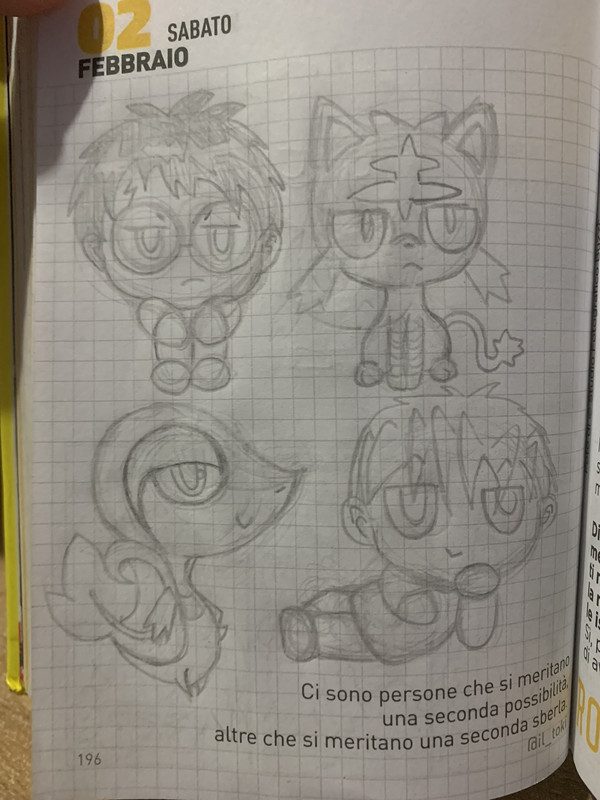 Kreideprinz Inviato 8 maggio, 2020 Autore Inviato 8 maggio, 2020 33 minuti fa, TheWorld98 ha scritto: Di nuovo io u.u Nascondi contenuto Stavolta si palesa soprattutto la mia incapacità di disegnare cerchi e di inquadrare l'immagine rispetto al foglio :v Forse devo decidermi a creare una discussione di disegni non brutti così ti sposto i messaggi lì