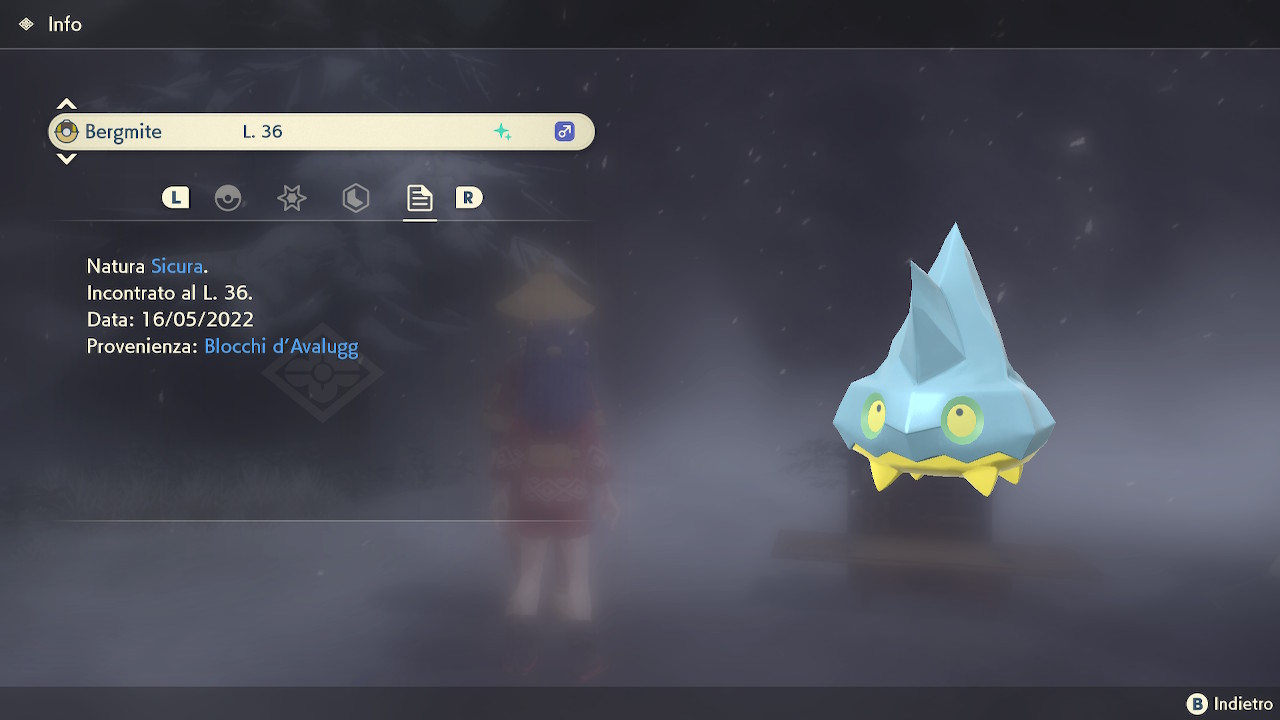 Combo Inviato 18 maggio, 2022 Inviato 18 maggio, 2022 22 ore fa, Celes ha scritto: Ieri ho trovato questo ghiacciolino shiny a caso mentre volavo. Nascondi contenuto Visto che dall'alto i bergmite normali e cromatici sono uguali e io manco l'avevo visto mentre volavo molto in alto e veloce, mi sono resa conto che era shiny solo dal suono delle stelline. E da lí è cominciato il dilemma. Intanto ero andata un pó piú avanti e non sapevo a che punto preciso corrispondeva quel suono e se intanto quel pokemon fosse sparito. Sono tornata indietro e non vedevo nessuno shiny. Solo dei bergmite. Scendo e niente. Poi uno di loro esce da dietro un blocco di ghiaccio e mi accorgo che ha la parte sotto gialla. Ecco XD Se avessi giocato con il volume un pó piú basso, mi sarebbe sfuggito sicuro. Meno male xD Sarebbe stato bello riapparire le stelline una volta allontanato un po' altrimenti diventa difficile trovarlo. Anche Glalie è simile, ho avuto fortuna che vado a terra e notavo le stelline qua altrimenti mi scambiavo per un Alfa, bruh...