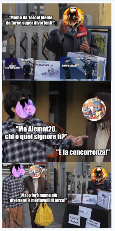 Diamaxus Inviato 13 gennaio, 2023 Inviato 13 gennaio, 2023 50 minuti fa, evilespeon ha scritto: Allora gente partiamo con il nuovo agg di bastonate a @Kiryu89 di oggi ESPI E LE SUE AVVENTURE A PALDEA PARTE 7 season 2 Nascondi contenuto Allora nello scorso ep avevamo mazziato e torciato il nostro amato kiryu e ora pika teratopo volante si preparava con rassegniazione all'esame della palestra Scopriamo che l'esame della palestra consiste nel partecipare in una live della vlogger kissara famosa in City Kissar ci saluta con elettrini e elettrine e la tentazione di torciarla è forte ma ci conteniamo Nel mentre ci dice che in qussto esame dovremmo cercae un passante a caso scelto da lei che si nascondera' in giro Sorpresa sorpresa il passante è il preside della scuola che a quanto pare passa il 90% del suo tempo fuori dalla scuola e intorno alle ragazze di paldea XD Pikachu approfitta ddlla live per evocare un amico topo,oggi sarà questo amico ad occuparsi dell'esame...chi meglio di lui a scovare gente? Ebbene si si tratta di lui il famoso detective pikachu i like della live salgono alle stelle ma poi aggiungiamo che non è proprio lui ma la sua version economica di zeria e ilike preciptano a 2...forse pikachu tera e pika detective economico stessi XD Il preside corre a nascondersi per la prima fase Pika detective economico dexide di imitare il suo omonimo famous e si prende un caffettino Si accomoda ad un tavolino del bar per bere il caffè e lì chi ci trova? Il nostro Preside seduto allo stesso tavolino Primo gioco superato Nel menre come tutti quando c'è una live che vogliono apparire el video per salutare mamme ,cugini e fratelli Kiryu si inserisce anche lui nel video di kissara con questo cartello Ora dovremmo battere in lotta un fan di kissara ma è rimasto traumatizzato dal cartello quindi lo bastoniamo veloce e via beeso il secondo nascondino game Il preside corre a nascondersi veloce Pikachu dopo il caffettino e io cartello di kiryu è un pochino stressato Quindi decide di andaw al centro poke ...ma purtroppo al cntro non trova l'infermiera di turno ma il nostro signor preside Seconda prova superata @TheMirko96 intanto decide che è il suo momento di brillare in live con questo cartello Arriva un altro fan di kissara per lottare e ci dice kissara è la sua queen...ma manco la fedeltà alla regina può curare il trauma da battute...anche lui si fa battere easy traumatizzato dal cartello Il preside corre a nascondersi per la terza e ultima volta Pikachu ancora intropidito dalle cure mediche ricevute dal preside infermiera decide di andare all'arena della città a sgranchirsi un po con un balletto Ma sbaglia un passo di danza e finisce in mare,una nave lo ripesca al volo e sorpresa sorpresa sulla nave c'è il preside Eaame delle palestre superato per il nostro pikachu bagnato fradicio e coi livelli di caffeina alti Intanto @Celes sta passeggiando in città con @Diamaxus e @Sonichu proprio mentre @Quasar decide di apparire in live anche lui con uno dei suoi classici...battute sui nomi dei poke in tedesco XD E dice Certo che phantump è un poke davvero bello...non ha paragoni ! Si a quanto pare phantump in tedesco è paragoni.... Sonichu decide di fare un attacco combinato con celes e diamaxus dopo aver visto i cartelli e sentito la battuta di quas e i tre creano il mega trigger torciante potenziato I live di kissara secondo voi dopo tutto sto casino saranno diminuiti o aumentati? Kissa_ra XD Comunque anche il terzo sfidante sconvolto e bruciacchiato si fa battere easy Kissara quindi ci da superat l'esame delle palestre e scappa da tutto il casino chiamndo il serivzio @Woolcloud taxi che intanto appare in live gridando nicolaaaaaaaa! Sarà un messaggio per espi? Per un fiochettide? Kissa sa sa ki non sa kissara XD ok smetto o torciate pure me XD Woolcloud offre a kissara un passaggio in plaestra alla modica cifra di 500 pokedollari con sconto di 20 dollari per i gym leader Kissara balza su Woolcloud e le due spariscono via tipo così Ma la love sta ancora registrando e @Alemat ne approfitta per ricordare i bei tempi quando @Kiryu89 voleva fare i meme ma lui rivendicava il ruolo di mematore per eccellenza...mentre ora gli tocca il ruolo di topo E mostra questo meme La love si chiude con noi che salutiamo i membri del covo 0 in live e chiediamo a @YukiV in città nascosta in cosplay da infiltrata per rubare i segreti elettrici della città travestita da cartellone pubblicitario di fare una cioccolata calda per il pika detective economico Finita la live ci rechiamo a fare la nostra sfida con kissara... To be continued -> il prossimo agg di racconto a paldea sarà lunedì gente Torciate e bastonate a piacere XD Stay tuned Taggo un po di people @YukiV @Celes @TheMirko96 @evil_gina @Alemat @Diamaxus @GameGate01@Woolcloud @Sonichu @M0viz @MoonlightUmbreon @Quasa @Kiryu89 @Quasar TORCEEEEEE "A ogni nuovo incontro segue sempre un addio. Tuttavia non è detto che debba essere per sempre... Starà a te deciderne la durata..." ~L'allegro venditore di maschere (TLOZ: Majora's Mask) Art Gallery