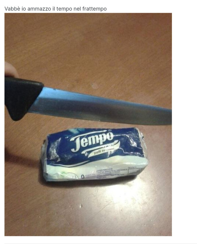 Woolcloud Inviato 3 maggio, 2023 Inviato 3 maggio, 2023 On 2/5/2023 at 19:04, evilespeon ha scritto: Allora gente so che oggi vi avevo detto ci sarebbe stato il racconto ma sto risconyrando enormi problemi di connessione so ilmfacconto è scritto ma non mi caricherebbe nessuna immagine o molto poche e un racconto senza immagini è come un pikachu in ferie...ci può stare ma senti c'è qualcosa che non va XD So vi sposto il racconto a domani Oggi tanto per lasciarvi qualcosa un mini sondaggio con immagini varie create dai nostri comici quale torcereste tra 1. Pane burro e...torceeeee con questo meme del web trovato dal nostro @Kiryu89 2. Chi ha tempo non aspetti tempo...e torci @TheMirko96 per questo meme 3. C'è stato un tempo in cui dandel provo al festival di Sanremo...forse si era perso ed era finito sul palco XD testo by @Celes 4. I comici nei pressi di espi...by @TheMirko96 Votate gente E domani racconto special so non usate tutte le torce ora...anche se vi capirei XD Taggo un po di people @YukiV @Celes @TheMirko96 @evil_gina @Alemat @Diamaxus @GameGate01@Woolcloud @Sonichu @M0viz @MoonlightUmbreon @Quasa @Kiryu89 @Franzini La 2. TORCEEEEEEE 1 ora fa, Diamaxus ha scritto: Questa è difficile. Il dragone è la più tamarra, la sigaretta forse è la più buffa, invece la pistola è quella che usa @Woolcloud XD Come hai fatto ad indovinare? XD 1 ora fa, Shadowve ha scritto: Io non fumo,ma sarebbe decisamente il mio accendini ideale. Fumerei solo per quello In effetti hai ragione XD E' stata aggiunta una reazione da Diamaxus e evilespeon 2