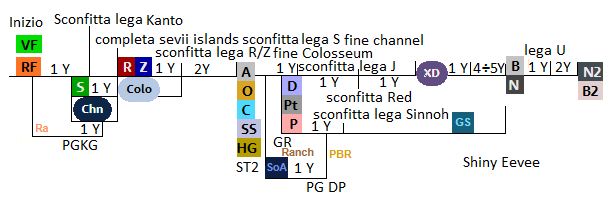 ShinyEevee Inviato 26 maggio, 2024 Autore Inviato 26 maggio, 2024 (modificato) Spoiler Allora premesso che impossibile farla precisa e che ho fatto solo di un multiverso, per comodità ho messo 1 anno come tempo per finire la lega e il gioco principale negli spin off e le connessioni sono fatte in base ai requisiti per scambi/trasferimenti e/o quello che siano collegamenti e/o noti passaggi di tempo. PGKG sta sta per Post Game Kyogre Groundon perchè in Ranger c'è nel post game le missioni di loro due e ho voluto collegarle a smeraldo sia perchè vengono svegliati entrambi che perchè nel post lega di smeraldo le grotte in cui appaiono vanno in giro xD PG DP è Post Game Dialga Palkia di Ranger 2 Ombre su Almia, nella missione c'è detto che Dialga è ferito perciò potrebbe essere per la rossocatena (o semplicemente durante uno scontro con Palkia xD) Pokemon ranger 3 invece non si sa niente però è ipotizzato che sia passato molto tempo dal 2 però prima del inizio di bianco e nero. Pokemon Ranch e Battle Revolution potrebbero essere da contemporanei a diamante, perla, platino fino a prima del inizio di bianco e nero Pokemon stadium 2 l'ho messo in contemporanea dei giochi di 2 gen... potrebbe tra l'altro anche essere un gioco pokemon all'interno del universo xD la sigla GR invece è per gyarados rosso @evilespeon Modificato 26 maggio, 2024 da ShinyEevee E' stata aggiunta una reazione da Diamaxus 1