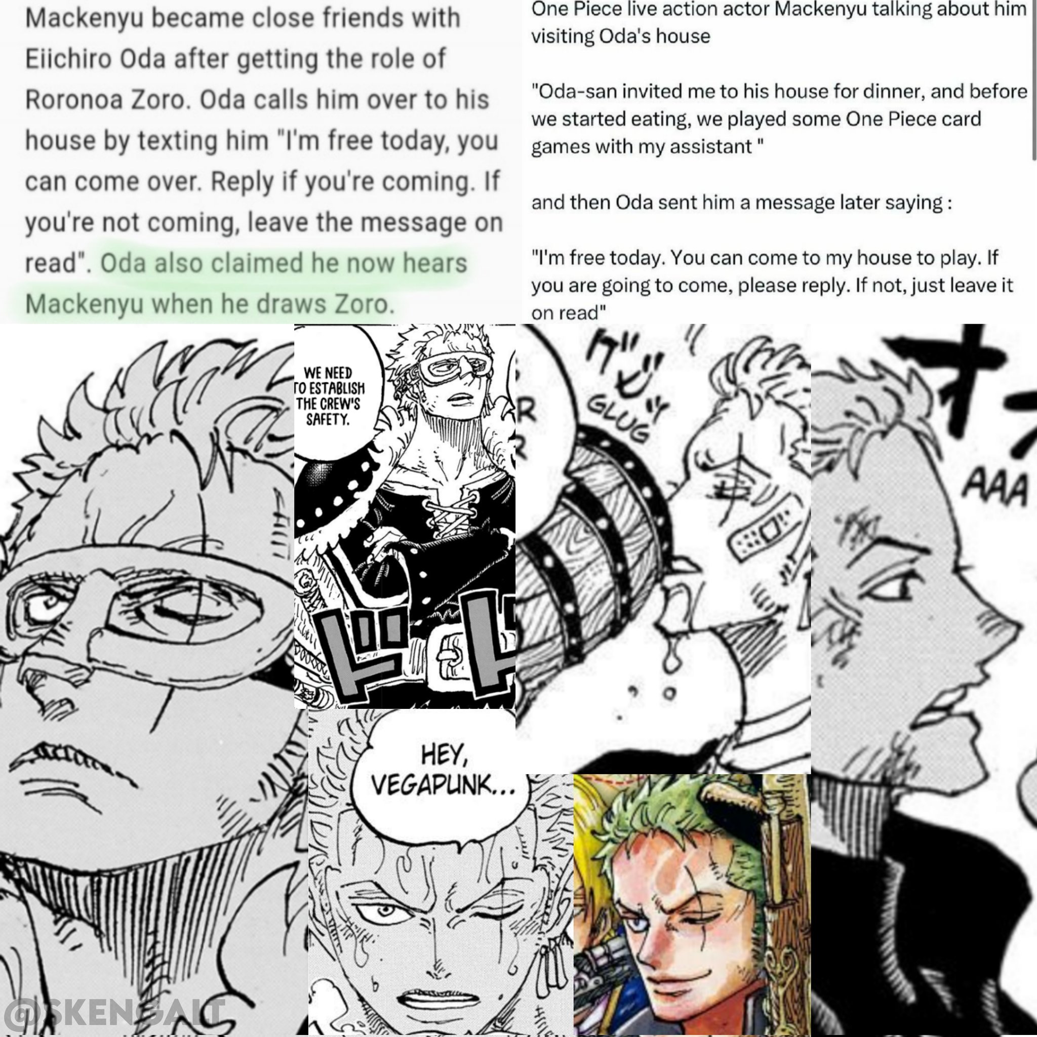 Celes Inviato 11 marzo, 2025 Inviato 11 marzo, 2025 (modificato) 1 ora fa, Eneru ha scritto: Sì sicuramente c'è una somiglianza per Luffy, però mi sembra una forzatura. Credo che il Gear5 sia stato ideato ben prima della scelta di Inaki. Per Zoro avevo notato qualchee cambiamento nel disegno ma non lo avevo minimamente collegato all'attore. Davvero interessante L'avevo pensato anch'io che magari Oda avesse ideato l'aspetto di Luffy Gear 5 un pò piú prima della scelta del casting però chissà. Grazie anche per il tuo parere visto che stai leggendo il manga e quindi hai potuto notare meglio questi cambiamenti nel disegno per Zoro e confermarli Se Oda ha detto che ora quando lo disegna se lo immagina con la voce dell'attore, viene da sè che i cambiamenti di stile siano collegati a lui, a maggior ragione se Oda ha stretto amicizia con Mackenyu e lo invita a casa per giocare alle carte di One Piece XDD 53 minuti fa, evilespeon ha scritto: ah ah si si lo avevo già visto Luffy gear 5 ma come hai detto te difficile non averlo proprio mai visto almeno di aspetto visto che girano duemila fanart XD comunque vero la somiglianza con inaki ci sta tutta XD E zoro sempre più gnocco ci sta anche XD poi appunto Zoro che beve elegant chi lo aveva visto prima XD Vabbe dai secondo me sicuro un po di influenza di opla ci è stata sicuramente....per oda opla è stato importante e inevitabilmente qualcosa si è portato dietro anche nella sua opera u.u Per il gear 5 forse hai ragione però sicuro opla una certa influenza sull'opera potrebbe averla avuta Comemhai detto te interessantissima la cosa Fanarts e edits che ho visto di Luffy/Inaki Gear 5 ti fanno collegare subito i capelli ricci arruffati di Luffy Gear 5 anime a quelli dell'attore, ma pure senza le arts il collegamento uno può farlo comunque XD Allora. Io Zoro con queste belle ciglia che addirittura si vedono pure di profilo al di là della linea del naso o con le labbra cosí rifinite non me lo ricordo proprio XD E manco che beve in modo elegante da un boccale XD (Non baderà che la birra gli cola addosso da come si vede dalla vignetta, ma beve comunque con aria armoniosa ) Modificato 11 marzo, 2025 da Celes E' stata aggiunta una reazione da evilespeon 1 ~ LA MIA ART GALLERY ~ (Credits dolls + altre fan-dolls in spoiler :3) (Joy and Flareon signatures made by me ^-^) Spoiler (dolls di Kukui e Burnet by @Porygatto) <Alola! <It's champion time!(dolls di Kukui, Dandel e me create da me) Ringrazio tanto @Mana per queste doll di Kukuino Royalino e per Dandelino Diamantino Set Kukui Mr. Royale by @Alemat. Grazie mille!! :3 Sprite creato per me da @Alemat per la serie "Utenti di PM" :3 Kukuino Surfer creato per me by @Alemat Sonia Regina (Masters) by @Diamaxus Grazie a @Fr4nciX per queste doll di Flareon e Gardevoir versione hanami :3 E a @Freedom per questi altri recolor :3 E per questi Kukuini: Kukuino bagnino scintilloso e con Ho-Oh stellare pure e Kukuino Royalino Tribale {Happy Pokemon journey...and may the Shinies be with you!} Clone Wars sprites (source: web) Grazie ancora a @Mana anche per le doll di me stessa (vicino a Flareon :3) e per Furret shiny :3 MegaGardevoir di tipo Fuoco! *-* creata per me da @DaniGrovyle