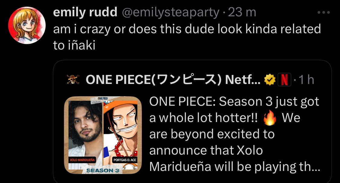 DarthMizu Inviato 5 novembre Inviato 5 novembre 1 ora fa, Celes ha scritto: Io che vedo la notizia sapendo già dei tanti rumors da due anni fa: 🤣🤣 Ma comunque volevo che fosse lui perché già quando l'ho visto insieme a Inaki aveva proprio le vibes Nascondi contenuto da Ace che mi pareva il fratello suo XD Insieme fanno un bel duo Netflix, te già stai a annuncià la S3...ma se qua c'è la gente che vuole vedè Zoro shirtless... 🤣🤣 Diglielo pure tu a Darth XD Che brutto e brutto... Anzi, ha fascino latino @DarthMizu 1 ora fa, Celes ha scritto: Ok che non sarà bello bellissimo accecante come Mackenyu, ma oggettivamente mica è brutto lui oh, è un bel tipo, su Inaki si ha fascino latino e anche parecchio, quei capelli e quegli occhioni neri neri!!!! Però l'altro mah...cioè ACE era un pezzo di figo nell'anime, tra lui e Zoro facevano a gara eha hahahaha E' stata aggiunta una reazione da Celes e evilespeon 2 Paldea Champion Star Legend Hisui Galar Alola Kalos