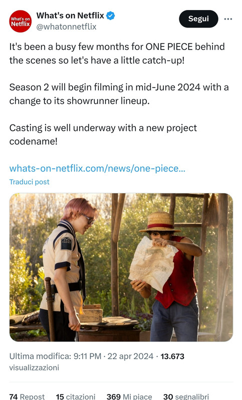 Celes Inviato 23 aprile, 2024 Inviato 23 aprile, 2024 (modificato) 1 ora fa, DarthMizu ha scritto: Perché il casting ha un nome in codice??? Quindi immagino che prima della primavera del 2025 non arriverà la nuova stagione? Uff!!!!!!!! Il processo di casting avrà un nome in codice per evitare possibili leak prima del tempo quando verranno scelti gli attori. Anche nella prima stagione hanno usato un nome in codice per le selezioni, tant'è che quando gli attori erano stati contattati, non sapevano nè il nome della serie nè tantomeno il loro ruolo. Lo hanno saputo solo al momento dei provini. Addirittura Mackenyu, proprio perché non si doveva sapeva niente nelle prime fasi di selezione, quando era stato contattato aveva rifiutato la parte perché non sapeva di cosa si trattava. Lo staff peró, non trovando nessun altro per Zoro, lo ha ricontattato di nuovo e pur di prenderlo gli hanno rivelato la parte che doveva essere top secret. Appena gli hanno detto che il ruolo era quello di Roronoa Zoro ha accettato subito e non ci potè credere perché lui è un superfan di One Piece e Zoro è il suo personaggio preferito XD Quindi il nome in codice è solo per una questione di tutela per le fughe di notizie nelle prime fasi di produzione. Ma comunque penso che Opla non sia stata l'unica ad avere nomi in codice di progetto, penso che sia proprio una prassi che possono adottare le produzioni cinematografiche in fase di casting. Allora, è uscita pure un'altra notizia che riporta la durata delle riprese: Spoiler 7 mesi per le riprese. Poi c'è la fase di post-produzione (montaggio, suono, effetti speciali, ecc. ecc.) che ci impiega diversi mesi pure. Nel totale, già c'era stato un annuncio da parte della produzione che il tempo impiegato sarebbe stato di 12-18 mesi massimo. Quindi, se ci impiegheranno un annetto, vedremo la serie nell'estate del 2025 e secondo me sarà sempre ad agosto come per la prima stagione. @evilespeon @Diamaxus 1 ora fa, DarthMizu ha scritto: Oddio che bonazzo assurdo che è!!!! Basta, @Celesnon postare più foto compromettenti di lui!!! no, dai, postane ancora tante Aiuto, non mi aspettavo una risposta cosí esplicita Comunque quotone 🤣 "Compromettenti" mo' Due foto da fotomodello ho postato XD Manco fosse shirtless 🤣 (Anche se sono abbastanza 🔥 comunque, bisogna ammetterlo XD) Scusa ma riguardo alla frase piccolina in fondo cancellata per finta, questo è il topic di OPLA, non il topic di Zoro se*y fotomodello Modificato 23 aprile, 2024 da Celes ~ LA MIA ART GALLERY ~ (Credits dolls + altre fan-dolls in spoiler :3) (Joy and Flareon signatures made by me ^-^) Spoiler (dolls di Kukui e Burnet by @Porygatto) <Alola! <It's champion time!(dolls di Kukui, Dandel e me create da me) Ringrazio tanto @Mana per queste doll di Kukuino Royalino e per Dandelino Diamantino Set Kukui Mr. Royale by @Alemat. Grazie mille!! :3 Sprite creato per me da @Alemat per la serie "Utenti di PM" :3 Kukuino Surfer creato per me by @Alemat Sonia Regina (Masters) by @Diamaxus Grazie a @Fr4nciX per queste doll di Flareon e Gardevoir versione hanami :3 E a @Freedom per questi altri recolor :3 E per questi Kukuini: Kukuino bagnino scintilloso e con Ho-Oh stellare pure e Kukuino Royalino Tribale {Happy Pokemon journey...and may the Shinies be with you!} Clone Wars sprites (source: web) Grazie ancora a @Mana anche per le doll di me stessa (vicino a Flareon :3) e per Furret shiny :3 MegaGardevoir di tipo Fuoco! *-* creata per me da @DaniGrovyle