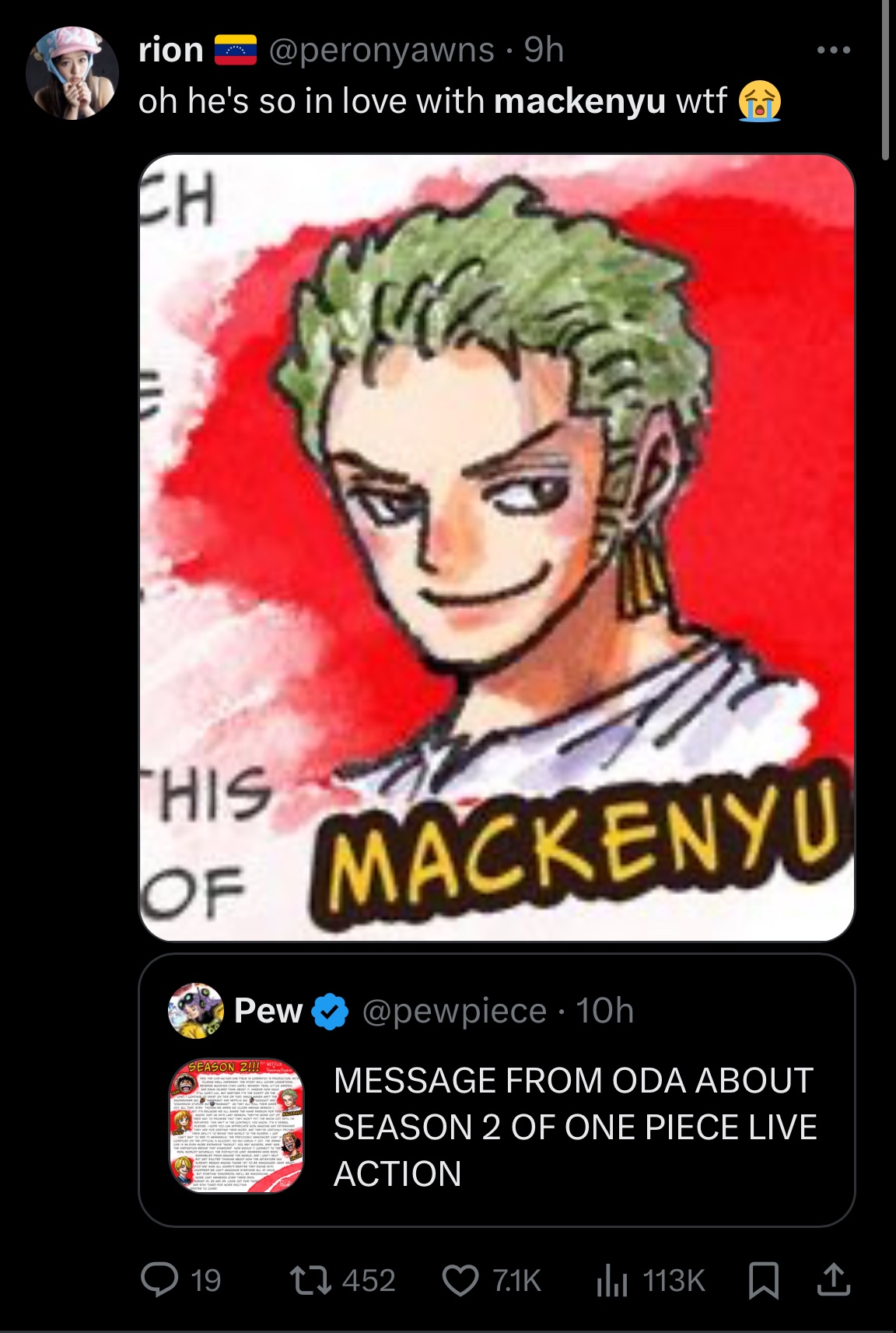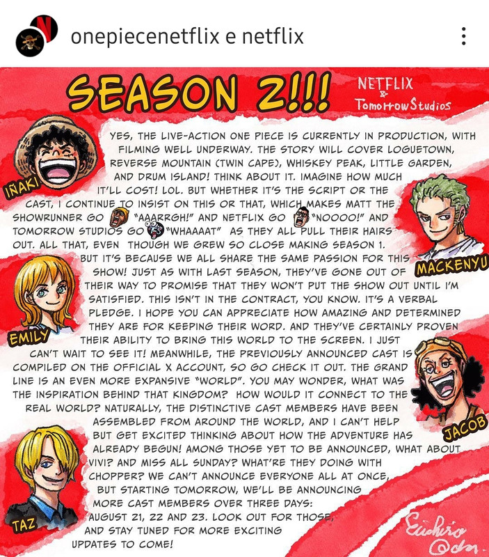 DarthMizu Inviato 22 agosto, 2024 Inviato 22 agosto, 2024 On 20/08/2024 at 23:03, Celes ha scritto: Omg omg omg!!!! Nuove big news!!!!! Direttamente da Oda! Leggeteeee @evilespeon @Diamaxus @LucarioGoldragon @DarthMizu @Tails E chi vuole aggiungersi alla lettura e ai commenti per questa notizia si aggiunga Riporto anche il post da Twitter: Nascondi contenuto Quindi Oda ci annuncia che: - la seconda stagione arriverà fino all'isola di Drum e ci sarà anche Whiskey Peak!! (E quindi probabilmente Alabasta non ci sarà oppure Oda non l'ha detto qui e ci sarà lo stesso, magari una prima parte perché Alabasta è lunga) - la serie anche questa volta non andrà in onda fino a quando lui stesso non sarà soddisfatto del risultato - ci saranno nuovi annunci di cast il 21, il 22 e il 23 agosto!! Yeee!! I disegnini che ha fatto degli attori comunque son fantastici, troppo bellini! :3 Mega hype, gente! XD ooooh che bello un messaggio direttamente da Oda!!!! Cavolo sono proprio alla merce sua, o fanno come vuole lui o niente ahhahaha beh meno male visto che fine fanno certe serie per colpa dei produttori... Son curioso di sapere gli attori, per ora hanno rivelato solo i dottori amici di Chopper? Quindi niente Alabasta...uhm forse non ricordo bene però considerando che in una serie live action è tutto molto ridotto, mi sembra poco per un'intera stagione, considerando la mole di archi che mancano alla fine eh eh eh non trovate? Se dedicano una stagione ad un arco o due, non la finiranno più la serie ahahahha Paldea Champion Star Legend Hisui Galar Alola Kalos