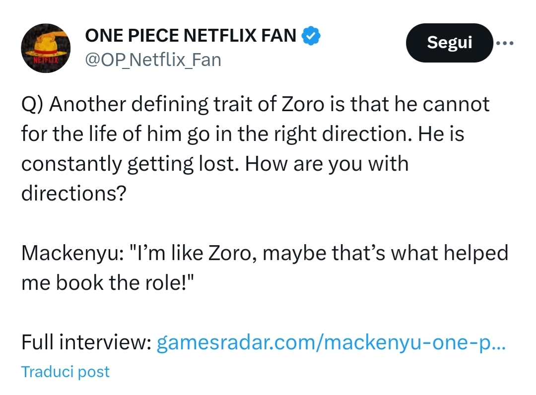 Celes Inviato 10 ottobre, 2023 Inviato 10 ottobre, 2023 On 9/10/2023 at 21:50, evilespeon ha scritto: ah ah è zoro in real confirmed XD Già, e piú vedo i video e piú me ne convinco xD E non solo lui, ma anche tutti gli altri XD Il cast approvato da Oda l'hanno scelto con lo stampo XD Guarda tipo anche questo video, sembrano troppo Rufy e Zoro in real life 🤣 Inaki ha la stessa chaotic energy di Rufy e Mackenyu è introverso come Zoro xD (Nel video si vedono pure le reazioni di Mackenyu molto alla Zoro alla stessa domanda dei giornalisti se lui è fan di One Piece e lui "Sono giapponese" e punto XD ) C'hanno fatto addirittura la versione anime ripresa da questo video XD Spoiler Same vibes Poi Inaki in quest'altro video che avevo visto che addirittura abbraccia Mackenyu e lo solleva da terra 🤣 Dimmi te se non è da Rufy 🤣 Spoiler Poi Taz, l'attore di Sanji, che ha la stessa risata di Sanji XD Cioè XD ~ LA MIA ART GALLERY ~ (Credits dolls + altre fan-dolls in spoiler :3) (Joy and Flareon signatures made by me ^-^) Spoiler (dolls di Kukui e Burnet by @Porygatto) <Alola! <It's champion time!(dolls di Kukui, Dandel e me create da me) Ringrazio tanto @Mana per queste doll di Kukuino Royalino e per Dandelino Diamantino Set Kukui Mr. Royale by @Alemat. Grazie mille!! :3 Sprite creato per me da @Alemat per la serie "Utenti di PM" :3 Kukuino Surfer creato per me by @Alemat Sonia Regina (Masters) by @Diamaxus Grazie a @Fr4nciX per queste doll di Flareon e Gardevoir versione hanami :3 E a @Freedom per questi altri recolor :3 E per questi Kukuini: Kukuino bagnino scintilloso e con Ho-Oh stellare pure e Kukuino Royalino Tribale {Happy Pokemon journey...and may the Shinies be with you!} Clone Wars sprites (source: web) Grazie ancora a @Mana anche per le doll di me stessa (vicino a Flareon :3) e per Furret shiny :3 MegaGardevoir di tipo Fuoco! *-* creata per me da @DaniGrovyle
