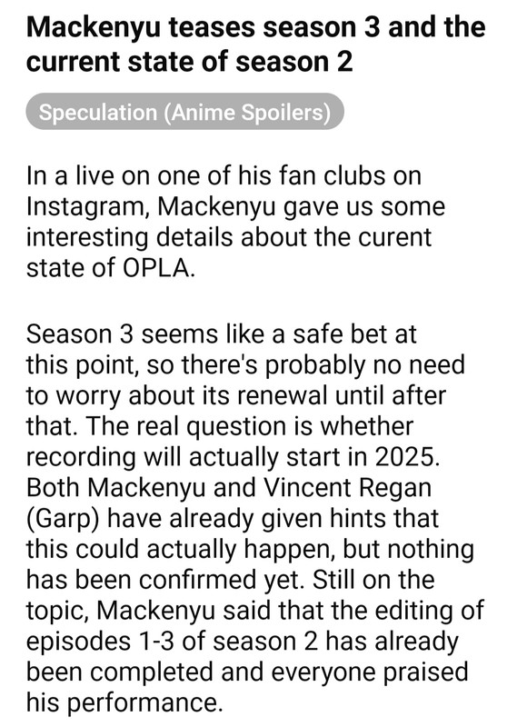 Celes Inviato 5 dicembre, 2024 Inviato 5 dicembre, 2024 Una fuga di notizie c'è stata da parte di un attore del cast durante un comicon tenutosi pochi giorni fa. Da parte di nientepopodimeno che....il grande Garp XD Per ciò che si è lasciato sfuggire direi che il premio dell'anno come miglior leaker se lo merita lui Leggete un pò che cosa ha detto: Spoiler Dice che ha appena finito le sue riprese e che in generale tutte le riprese finiranno in circa un mese (e quindi in questo Dicembre). E che quindi probabilmente la serie uscirà prima di Natale dell'anno prossimo. Cioè, ha dato una possibile release date che nessuno prima d'ora aveva mai menzionato. E non solo. Pure una notizia scoop sulla terza stagione a cui cominceranno a lavorarci presto, facendo capire che probabilmente l'inizio delle riprese della terza non attenderà l'uscita della seconda stagione? Ma signor nonno di Luffy, lei con queste supposizioni si è lasciato sfuggire dei bei spoiler...XD Chissà se poteva dirli secondo Netflix...🤣 @evilespeon @Diamaxus E' stata aggiunta una reazione da Diamaxus 1 ~ LA MIA ART GALLERY ~ (Credits dolls + altre fan-dolls in spoiler :3) (Joy and Flareon signatures made by me ^-^) Spoiler (dolls di Kukui e Burnet by @Porygatto) <Alola! <It's champion time!(dolls di Kukui, Dandel e me create da me) Ringrazio tanto @Mana per queste doll di Kukuino Royalino e per Dandelino Diamantino Set Kukui Mr. Royale by @Alemat. Grazie mille!! :3 Sprite creato per me da @Alemat per la serie "Utenti di PM" :3 Kukuino Surfer creato per me by @Alemat Sonia Regina (Masters) by @Diamaxus Grazie a @Fr4nciX per queste doll di Flareon e Gardevoir versione hanami :3 E a @Freedom per questi altri recolor :3 E per questi Kukuini: Kukuino bagnino scintilloso e con Ho-Oh stellare pure e Kukuino Royalino Tribale {Happy Pokemon journey...and may the Shinies be with you!} Clone Wars sprites (source: web) Grazie ancora a @Mana anche per le doll di me stessa (vicino a Flareon :3) e per Furret shiny :3 MegaGardevoir di tipo Fuoco! *-* creata per me da @DaniGrovyle