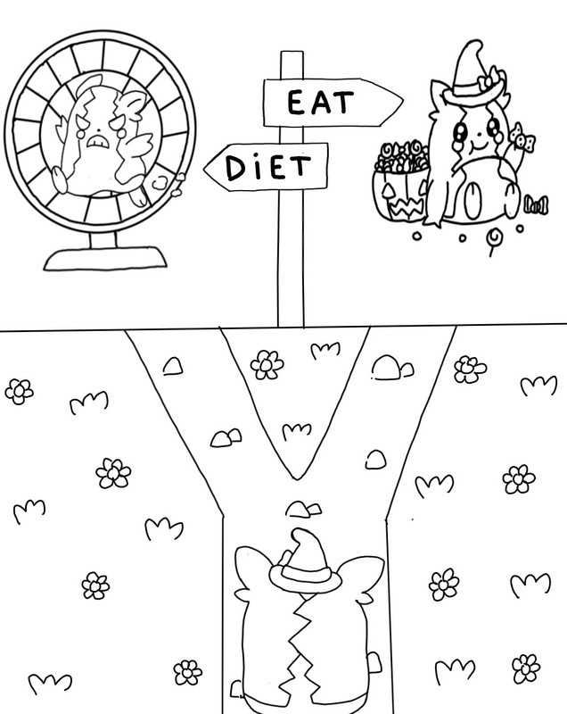 GameGate01 Inviato 12 ottobre, 2024 Inviato 12 ottobre, 2024 2 ore fa, evilespeon ha scritto: Grazieee milleee Grzieeeee un saccoooo kohai Allora gente oggi DAY 12 Y per X avevo fatto un poke su twitter/x so per Y anche volevo fare qualcosa di particolare Ma prima serve una piccola introduzione esplicativa...moh inizio: Ogni anno in questo periodo un morpeko è messo davanti ad una scleta di vita fondamentale...sta arrivando Halloween il che vuol dire dolcetto o scherzetto Morpeko si trova a pensare che se mangia tutti i dolcetti che vuole sarà davvero bello ma si farà anche un po di panzetta che dovrà smaltire dopo con una allenamento spartano tipo espi che tiene in forma i pika XD quindi che deve fae morpeko? Mangiare tutti i dolcetti che vuole e lasciarsi andare o fare un po meno dolcetto e scherzetto e mantenersi in forma con dieta e esercizi vari? Ho voluto intendere la Y come bivio visto la forma della lettera Nel disegno vedete il piccolo morpeko che pensa a che fare per l'arrivo di Halloween....da una parte del bivio la mangiata di dolcetti con morpeko un po panciutello dall'altra l'esercizio fisico regolare e meno mangiate con morpeko che corre nella ruota per criceti che mi faceva carino Ovviamente quello che magna è il panciapiena e quello che sia allena il panciavuota che ci sta Al morpeko ho aggiunto anche un capellino da streghetta che faceva un po Halloween Un po particolare come cosa ma qualcuno mi aveva suggerito di fare bivio come idea per y e io la ho resa cosí Non ricordo chi me lo aveva detto ma grazieeeee per l'idea Spero vi piaccia Nascondi contenuto Taggo @GameGate01 fan di morpeko e il kohai @Diamaxus Idea carinissima. Io farei Eat, può permetterselo Team Galaxy