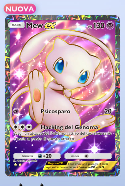 Diamaxus Inviato 17 dicembre, 2024 Inviato 17 dicembre, 2024 30 minuti fa, evilespeon ha scritto: apro una sola busta perché solo una potevo aprirne senza clessidre in quel momento e.... Nascondi contenuto La full art animata è stupendaaaaaaaaaaa Prima e per ora unica bustina aperta della new espansione...si riparte alla grande u.u Serperior stupendooooo Lo ho preso anche io,bellissimoooo Grandissimaaa senpai io ho trovato queste 11 minuti fa, Combo ha scritto: Nel main, alla prima busta è uscita la meh Nascondi contenuto E poi sono uscite altre carte meh, solo due mi piacciono: Areodactyl EX e Dedenne full art. Insomma... lol Mentre nel side ha avuto più fortuna bruh... Oltre a Dedenne e Exeggutor entrambi full art, trovo questa Nascondi contenuto (LOL??) Yeeee Bellissimo quel mew "A ogni nuovo incontro segue sempre un addio. Tuttavia non è detto che debba essere per sempre... Starà a te deciderne la durata..." ~L'allegro venditore di maschere (TLOZ: Majora's Mask) Art Gallery