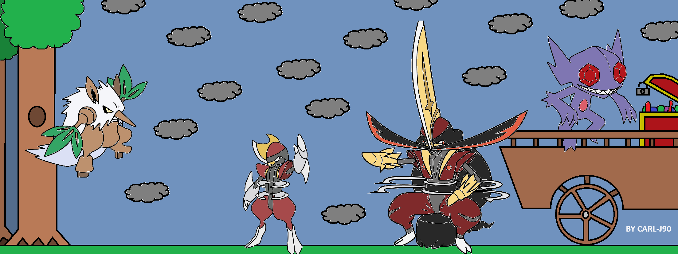 Carl-J90 Inviato 30 ottobre Autore Inviato 30 ottobre Premetto che, purtroppo, ancora una volta non sono riuscito ad adattare le proporzioni e i giochi di prospettiva dei pikè come avrei voluto... T.T Ecco qui il mio lavoro per il tema di oggi: [GIORNO 30 - BUIO]: Spoiler Descrizione: Il signore della guerra Kingambit di ritorno con la sua carovana nella sua terra natia dopo aver vinto una guerra contro un regno rivale viene intercettato da un potente Shiftry che, saltato fuori dalle fronde degli alberi in cui si era nascosto, è pronto a vendicare i suoi compagni caduti in battaglia. Troppo impegnato nel dare ordini e indicazioni al suo generale Bisharp sul da farsi contro il nemico appena apparso, Kingambit non si accorge del Sableye alpha che, seguendo i suoi istinti selvaggi, è impegnato a rubare il suo bottino di guerra in pietre preziose di cui il silenzioso ladro vuole farsi una scorpacciata! In questa situazione con protagonisti vari tipi Buio chi riuscirà a cavarsela? Il ladro Sableye è in combutta con Shiftry? Crediti: Nintendo, The Pokèmon Company, Game Freak, Carl-J90, coloringpages101.com E' stata aggiunta una reazione da evilespeon 1 My TSV ---> Pokémon Y= 2832; Pokémon AlphaSapphire= 2515; Pokémon Luna= 1219; Pokémon UltraSole= 0426; My Friend's Code ---> Pokémon Go= 9873 2614 0563; Pokémon Masters Ex= 2495-3101-4679-3356; Squadra su Pokémon Argento SoulSilver: Squadra su Pokémon Nero: Squadra su Pokémon Bianco2: Squadra su Pokémon Y: Squadra su Pokémon Zaffiro Alpha: Squadra su Pokémon Luna: Squadra su Pokémon UltraSole: Squadra su Pokémon Let's Go, Eevee: Squadra su Pokémon Spada: Squadra su Pokémon Perla Splendente: Squadra su Leggende Pokémon Arceus*: Squadra su Pokémon Scarlatto: *I tre starter di Leggende sono nelle loro forme Hisui.
