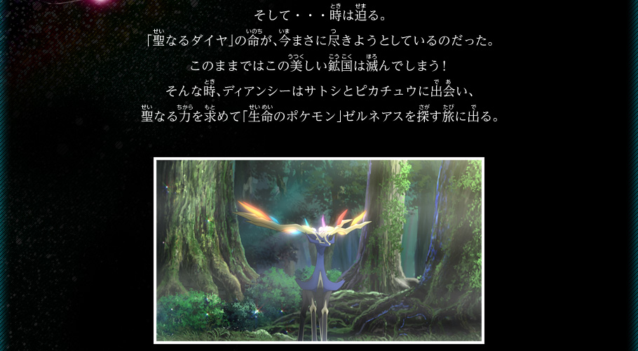 Guest Banax Inviato 8 marzo, 2014 Inviato 8 marzo, 2014 Il sito ufficiale del 17esimo film Pokémon: Il Bozzolo della Distruzione e Diancie è stato aggiornato con ulteriori dettagli sulla trama e nuove informazioni sui protagonisti di questo lungometraggio.Il Paese dei Diamanti è una terra bellissima che si trova in profondità nel sottosuolo, dove i Pokémon Gemma vivono in pace e prosperità . In questo luogo, si può trovare un diamante gigante conosciuto come Diamante Sacro. Questo, ha svolto un ruolo di importante risorsa energetica nel corso dei secoli. Tuttavia, la principessa del Paese dei Diamanti, Diancie, attualmente non possiede questo potere. Dopo aver incontrato Ash e Pikachu, Diancie parte per un viaggio per salvare il suo paese, un viaggio in cerca del "Pokémon Creazione", Xerneas, sfruttando il suo potere.Lungo il cammino, il Team Rocket, la ladra chiamata Marilyn e il ninja ladro attaccano Diancie. Riuscirà Diancie a salvare il suo paese? E quale sarà il destino di Ash e Pikachu? Lungo il cammino, il duo padre-figlio formato da Milis e Argos trovano un bozzolo dove il "Pokémon Distruzione" Yveltal, che si dice abbia un tempo eliminato ogni forma di vita della regione di Kalos, stia riposando...I nomi dei personaggi sono rivelati. La donna ladro con Delphox si chiama Marilyn Flame, il possessore di Greninja è chiamato Ninja Riot, Argos Steel è il padre di Milis Steel, che è il possessore di Chesnaught.Inoltre, ci sono anche dei Carbink che hanno dei nomi. Daii è l'anziano del paese mentre gli altri tre, Majima, Knight e Joke sono classificati come maggiordomi del Paese dei Diamanti e si uniranno a Diancie nella sua avventura.Articolo pubblicato nella categoria Animazione non vedo l'ora di vederlo