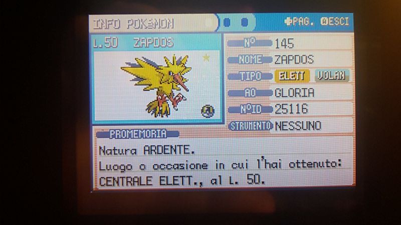 Rondineviola Inviato 1 ottobre, 2014 Inviato 1 ottobre, 2014 Ok, questo è un piccolo "giveaway" veloce (non so se questa sia la giusta sezione, spero di si). I 3 uccelli leggendari provengono da Rosso Fuoco, catturari un anno fa (e softresettato per un'eternità xD) Chiunque voglia partecipare, scrivete in questo topic "partecipo".Sabato 4 Ottobre scriverò sul topic i vincitori e mandero loro un messaggio per confermare lo scambio.I vincitori riceveranno uno degli uccelli leggendari, quindi uno riceverà articuno, l'altro zapdos ed infine l'ultimo moltres.ATTENZIONE: Se il vincitore non reclama il premio entro la mezzanotte del 4 ottobre, il premio verrà consegnato ad un altro user.Occasione da non perdere per i collezionisti! EDIT: Venerdì 3 Ottobre alle 23.30 chiudono le iscrizioni dei partecipanti!PS: Grazie per aver spostato questo topic nella sezione giusta.