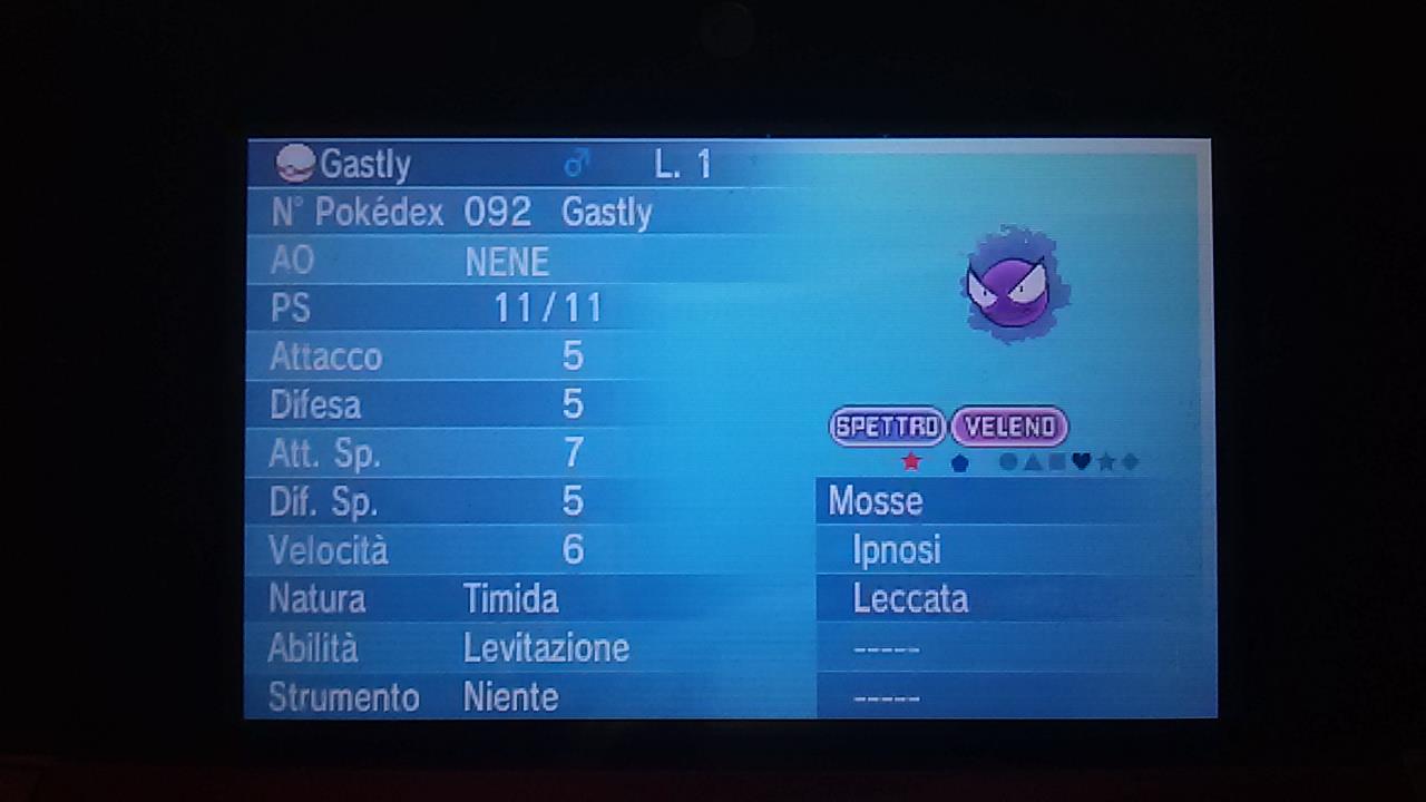 UltraNene Inviato 20 aprile, 2016 Inviato 20 aprile, 2016 Dopo giorni e giorni passati a fare uova... Eccolo qui! Ho riempito più di 6 box di gastly ma finalmente sono riuscita a trovarlo shiny e con 31ivs in ps, attacco, attacco speciale e velocità (speravo in qualcosa di meglioma credo che così possa andare bene per il competitivo, vero? *me ignorante*) In ogni caso è un regalo per il mio ragazzo, cosa non si fa per amore... (Mi sono fatta scambiare un gastly in premier ball dato che u AS non lo posso trovare, per avere laball abbinata a MegaGengar shiny ) Adesso scusate, vado a cercarmi un shiny per buttare giù questo futuro Gengar